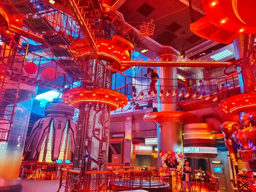 ■ 引擎区:位于乐园2层,是“齐天号”的心脏地带,核心是太空城引擎模组,为整个星舰提供能源和推进力。这里有齐天训练营,可以体验高空拓展等。