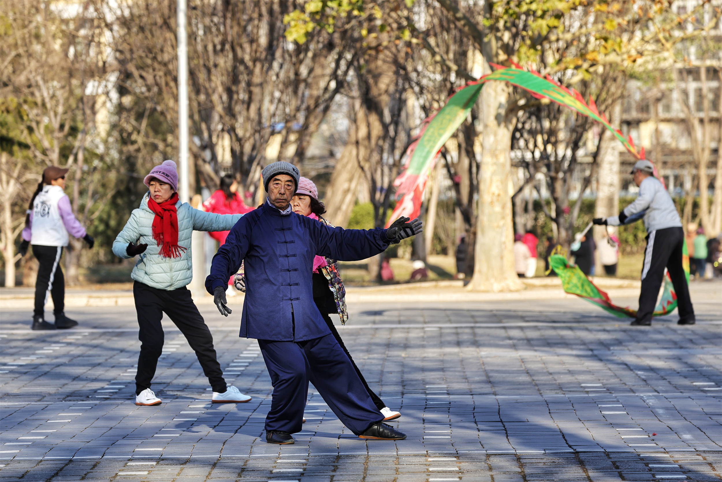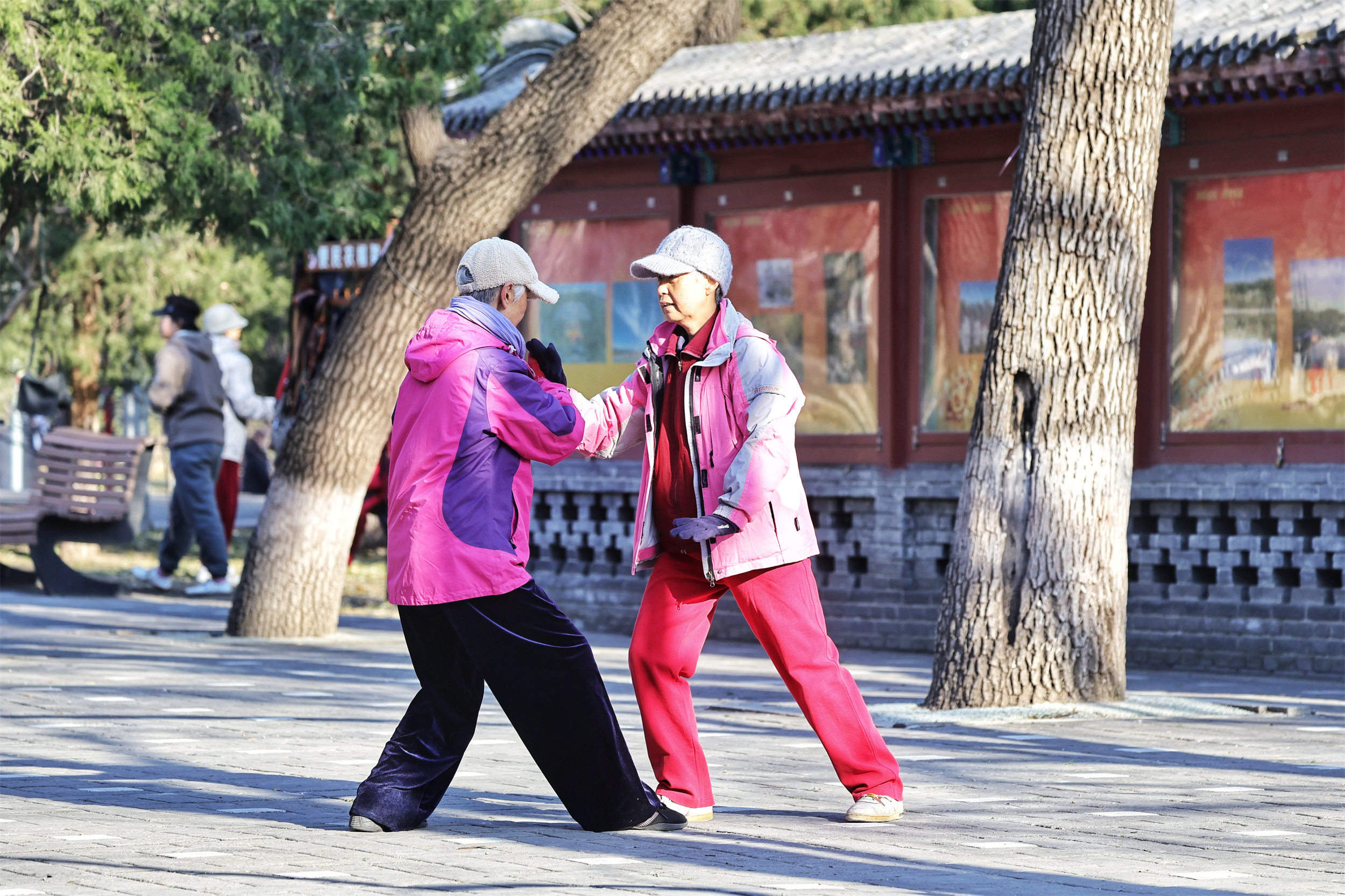 晨光里,几位市民正缓缓起式,太极拳的圆融轨迹与天地节律暗暗相合,吐纳间白气氤氲,人与园共呼吸。