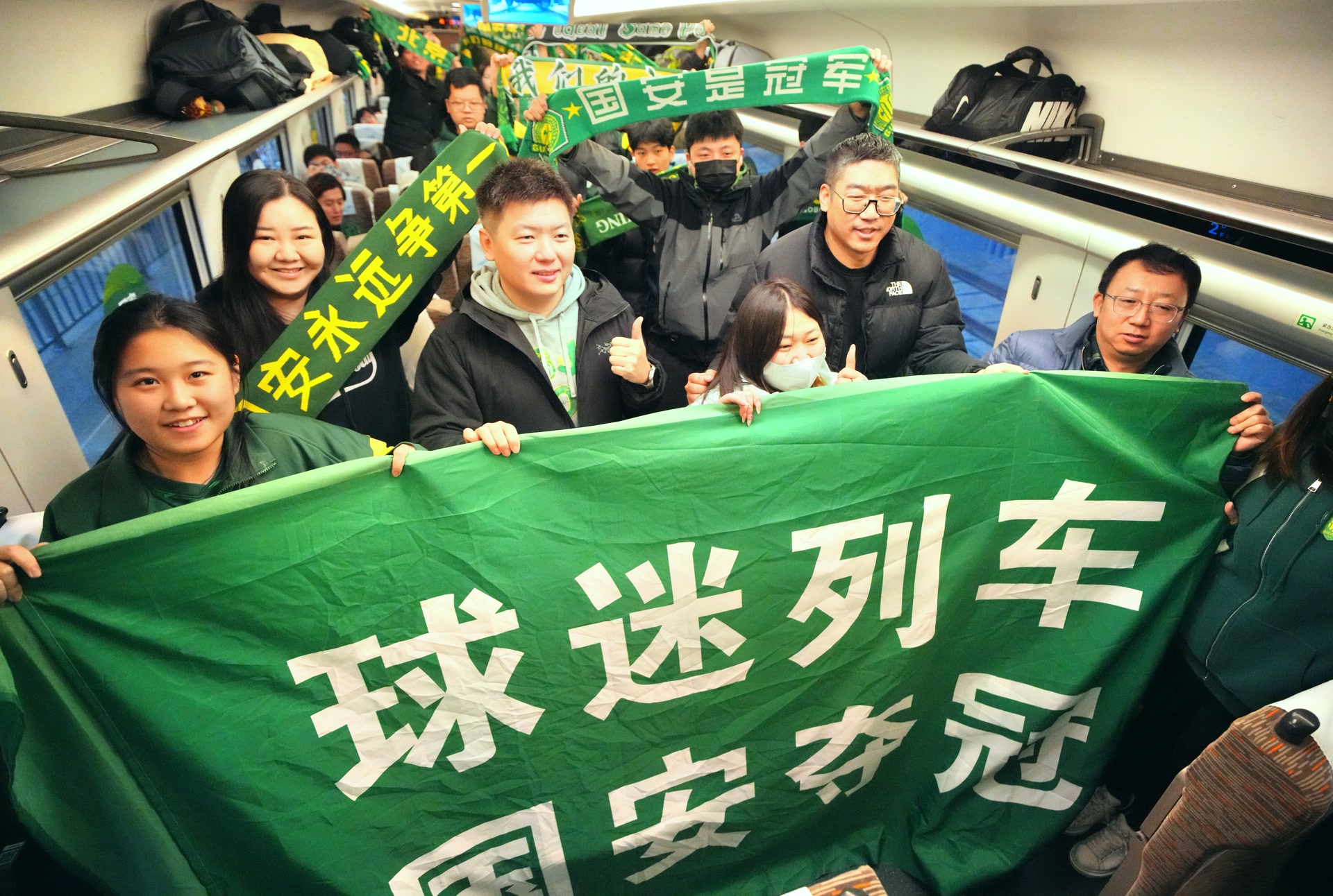 12月6日晚,足协杯决赛将在苏州展开角逐。上午9时10分,载有547名北京国安球迷的G115次列车从北京南站准时发出。这是国铁北京局首次开行“球迷列车”。
