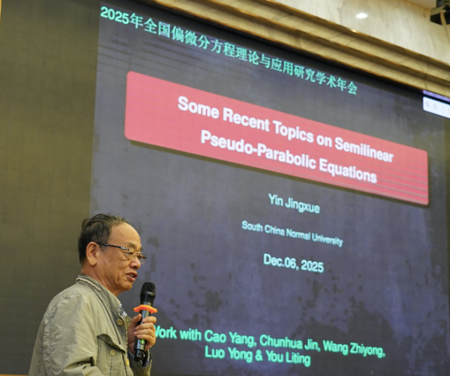 华南师范大学尹景学教授汇报了《半线性伪抛物方程的一些近期进展》。报告研究一类具有非线性源项的半线性伪抛物方程。该方程可视为热方程的伪抛物正则化形式。