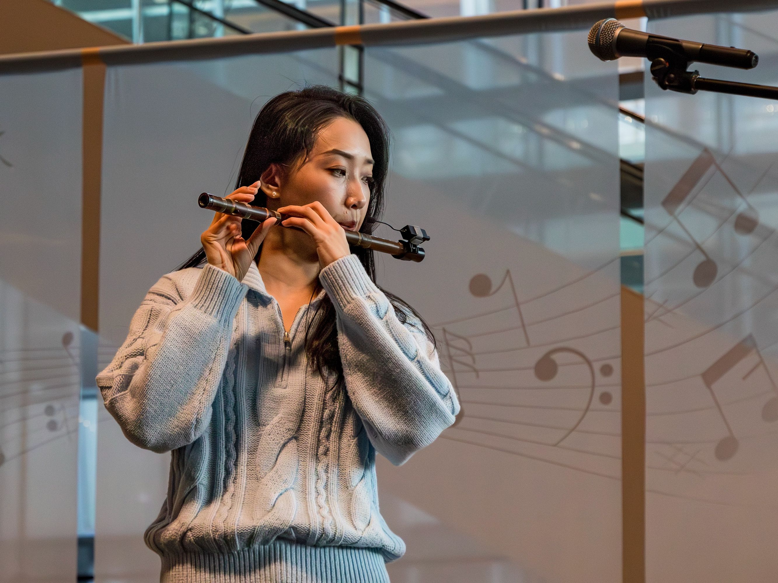 2025年12月6日, 大运河博物馆共享大厅里,中国歌剧舞剧院青年演员、“国民闺女”孙楚泊用笛子奏响悠扬乐章, 台下观众屏息聆听,镜头记录下这动人时刻。详情>>