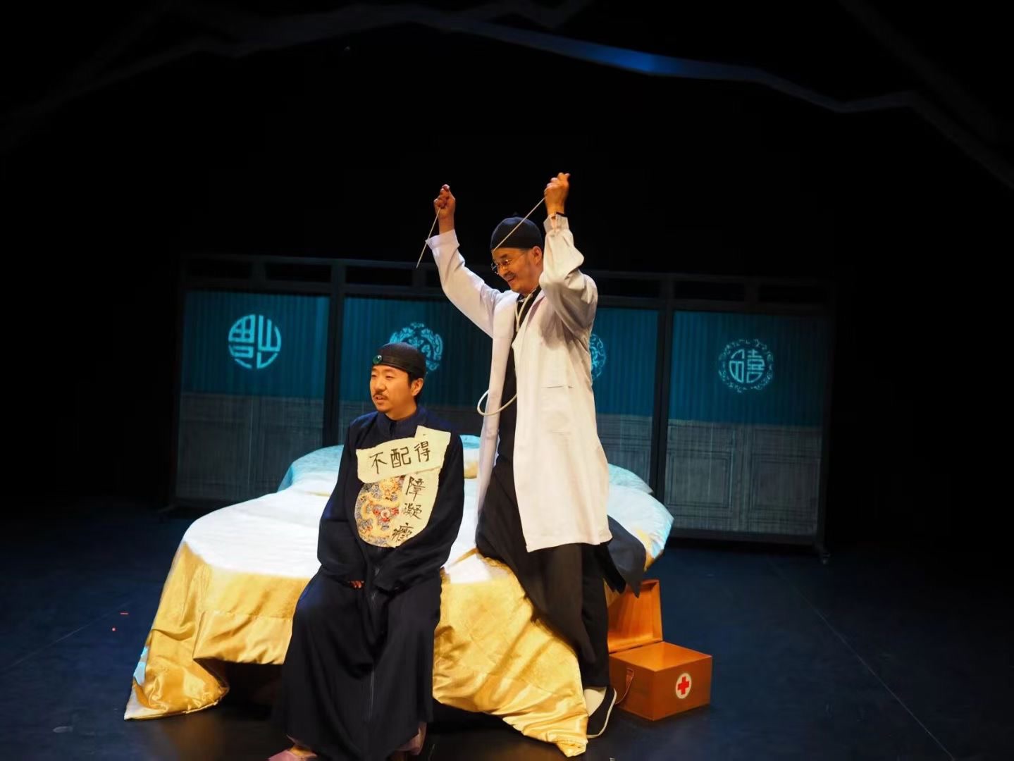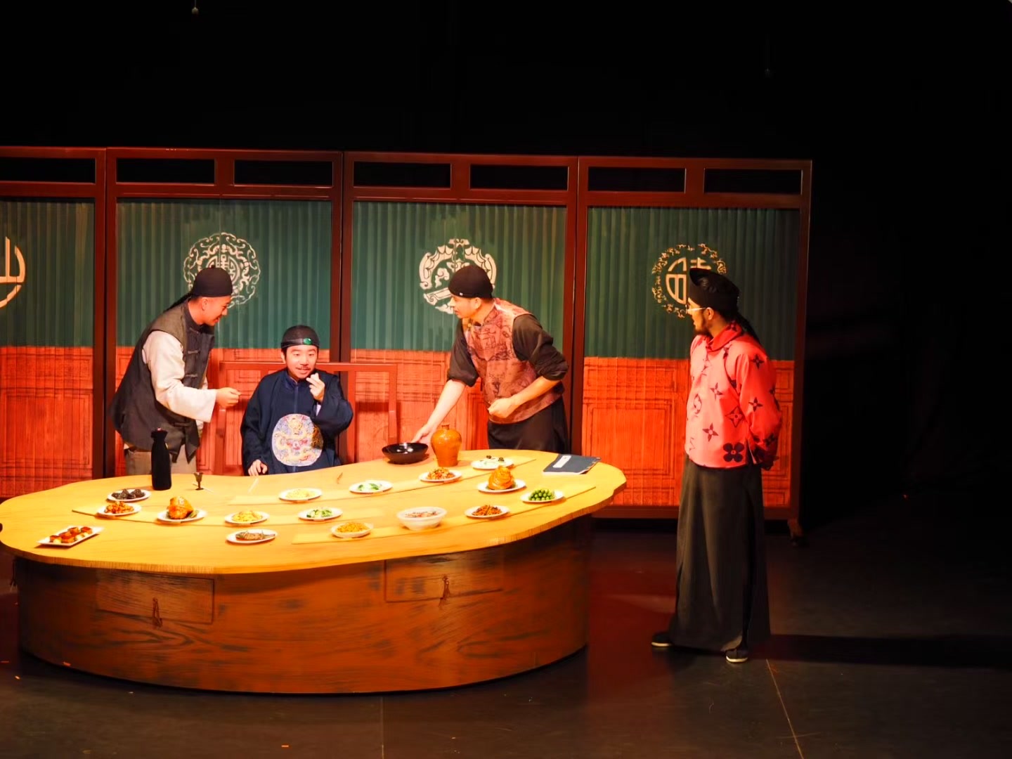 整个演出笑点密集,风格轻快幽默,用喜剧糖衣包裹严肃的哲学追问,在嬉笑怒骂间尽显荒诞本质。京味方言的融入、烟袋锅与锦绣华服的视觉碰撞、贝勒府与平民院的场景切换,让丹麦的人文主义启蒙思想,通过京腔京韵的市井烟火落地生根,既保留了霍尔堡喜剧的核心魅力,又让中国观众在欣赏和理解时毫无距离感,实现了“外来经典”与“本土文化”的无缝衔接。