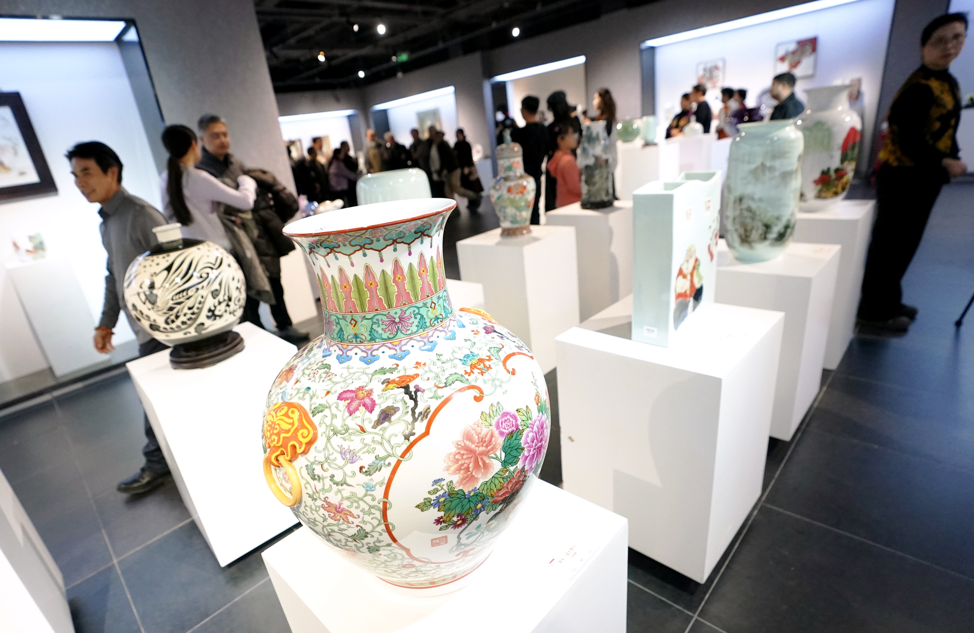 展览打造沉浸式观展体验,四大展厅各有侧重:序厅梳理陶瓷艺术发展脉络,传统陶艺展厅深耕青花、粉彩等经典工艺,现代陶艺展厅聚焦先锋创作,日用陶艺展厅则展现艺术与日常的融合。展品涵盖传统经典器型、现代创新之作与生活实用陶瓷,作者既有行业泰斗也有青年才俊,全方位呈现中国陶瓷艺术的多元面貌。