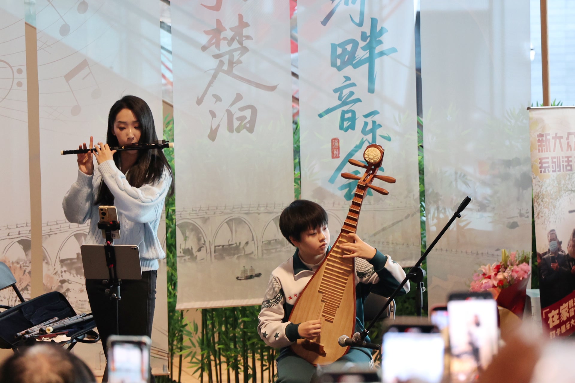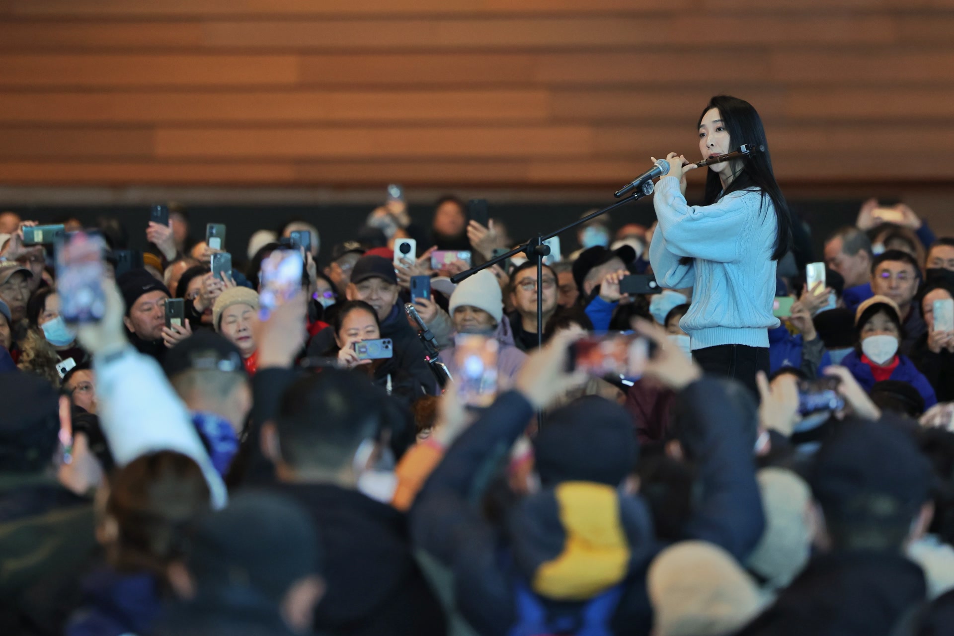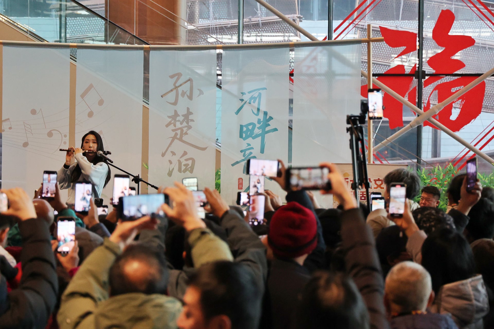 12月6日上午,北京大运河博物馆共享空间,笛声刚绕梁,舞台边匆匆走来安保人员,上千名观众紧张起来——“不会又要停了吧?”有人小声嘀咕。