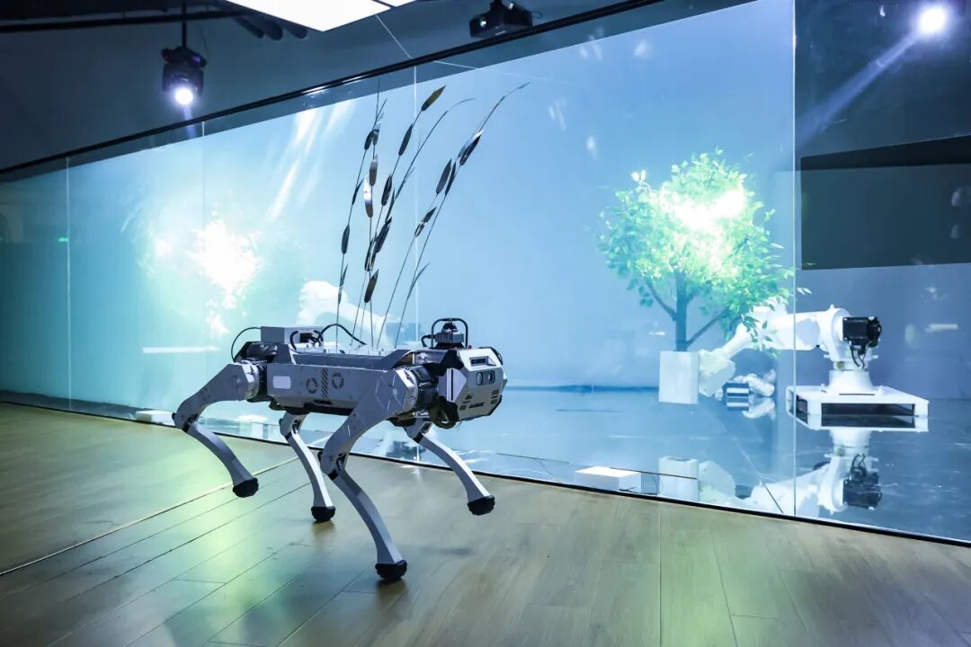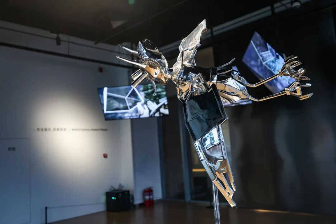 步入一层展厅,观众仿佛进入了一个由代码构建的异次元。七件数字装置作品散落在展厅内部——挥动着树枝的机械臂、摇动着帷幔的装置艺术,带给观众强烈的未来感。