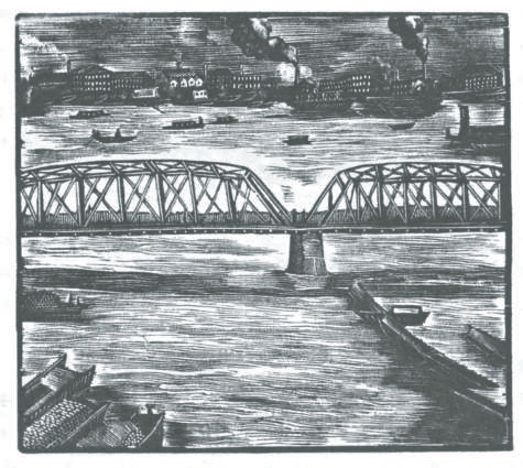 刘岘的创作打破了插图对文本的依附性。在《子夜之图》中,刘岘以象征手法拓展文本意境:如用齿轮与锁链隐喻工业文明的桎梏,以扭曲的霓虹灯影表现都市异化。这种“超文本”表达,使木刻脱离单纯的图解功能,升华为独立艺术语言。与此同时,茅盾的文字亦为刘岘提供叙事支点。小说中苏州河的浊水、外白渡桥的钢架等场景,经木刻转化后,成为具象化的时代符号。两者共同构建起“文字—图像”的双重叙事,开创了中国现代文学插图的新范式。