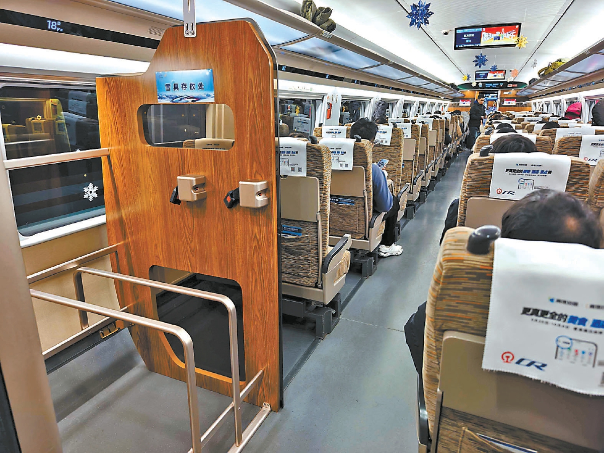 又是一年滑雪季,京张高铁雪具运输再推新方式。昨天,中国铁路北京局集团有限公司(以下简称“北京局集团公司”)表示,12月7日起至2026年雪季结束,铁路部门在京张高铁北京北至崇礼间各车站运行的8趟G字头列车上试点推出“雪具便利行”服务,铁路12306客户端同步上线“雪具便利行”功能,旅客线上预约成功并付费后可随车携带雪具并存放在列车指定位置,实现人和雪具随车同行。同时,京张高铁部分车站将继续提供“雪具快运”服务,“坐着高铁去滑雪”将更加方便快捷。