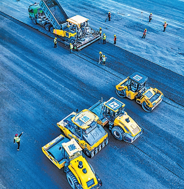 承平高速摊铺沥青路面