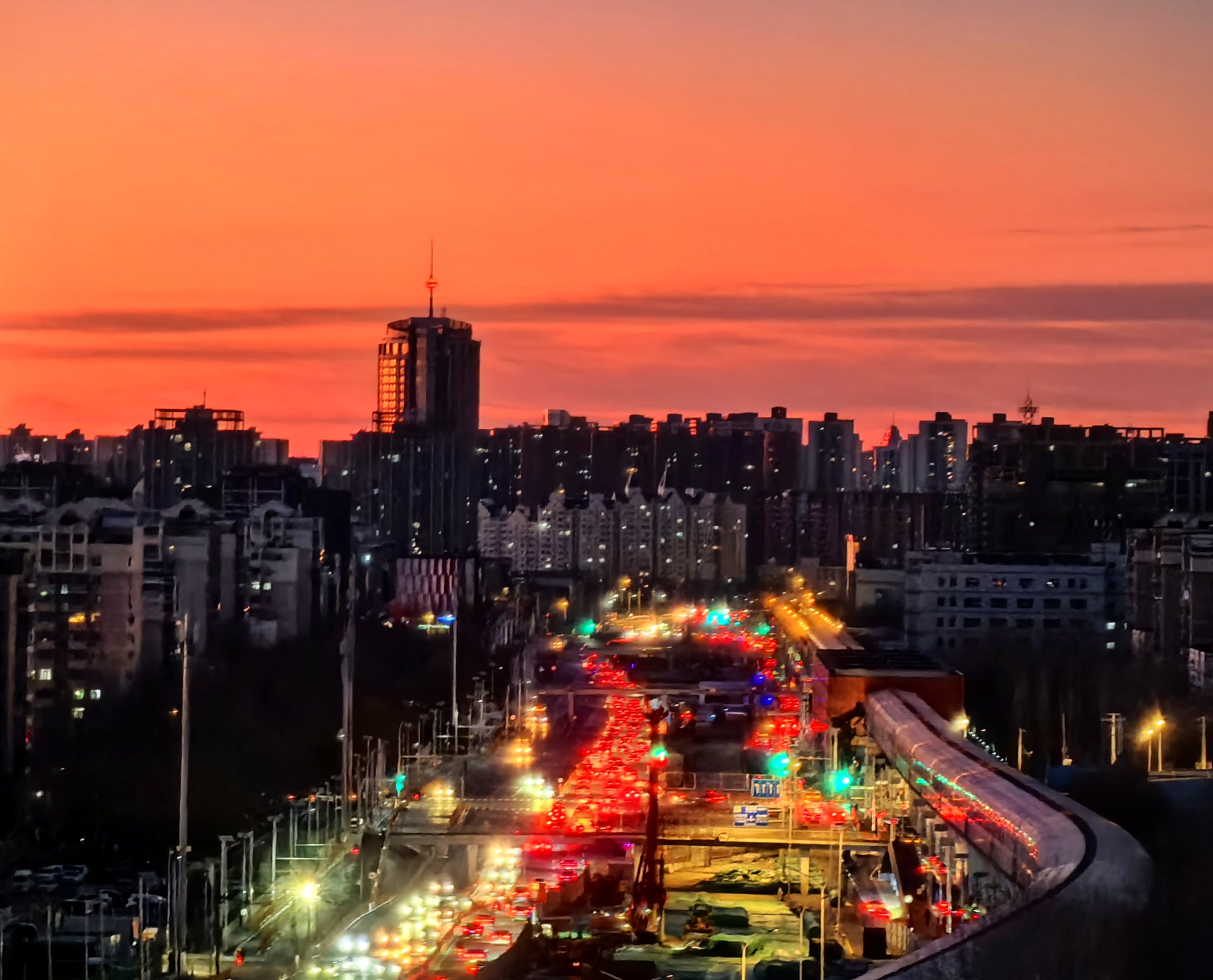 12月8日清晨,虽然走在上班路上的人们能感到冬日的清冷,但是京城天边升起的红日和随之而来的红色或粉色朝霞,却带来了一个又一个美景,共同为人们唤醒新一周的美好。