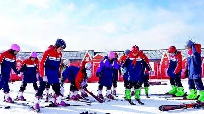 吉林省吉林市第二实验小学学生在吉林市纳美山谷度假区学习滑雪。 新华社发