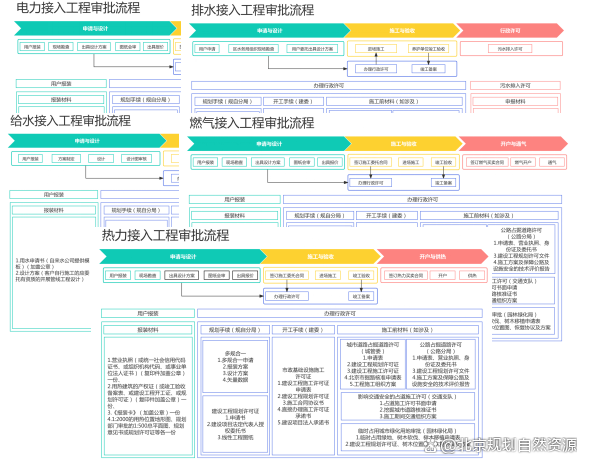 ●向前一步,梳理事项办理指南。主动对接供电、燃气、热力等市政公用服务企业,了解报装政策和流程;针对灾后重建项目,全流程系统性地梳理、整合与优化征地手续;结合实际,梳理形成市政接入工程分类审批、征占地等全流程办理指南、图册,为市政工程等各类建设项目提供用地审批服务。