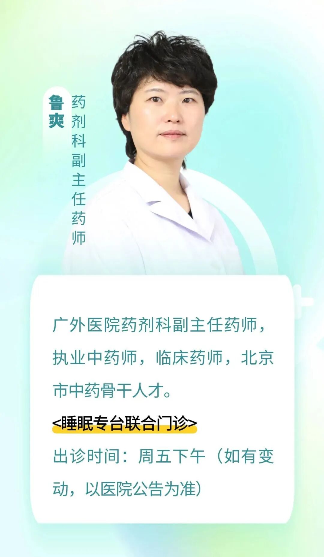 广外医院药剂科副主任药师鲁爽