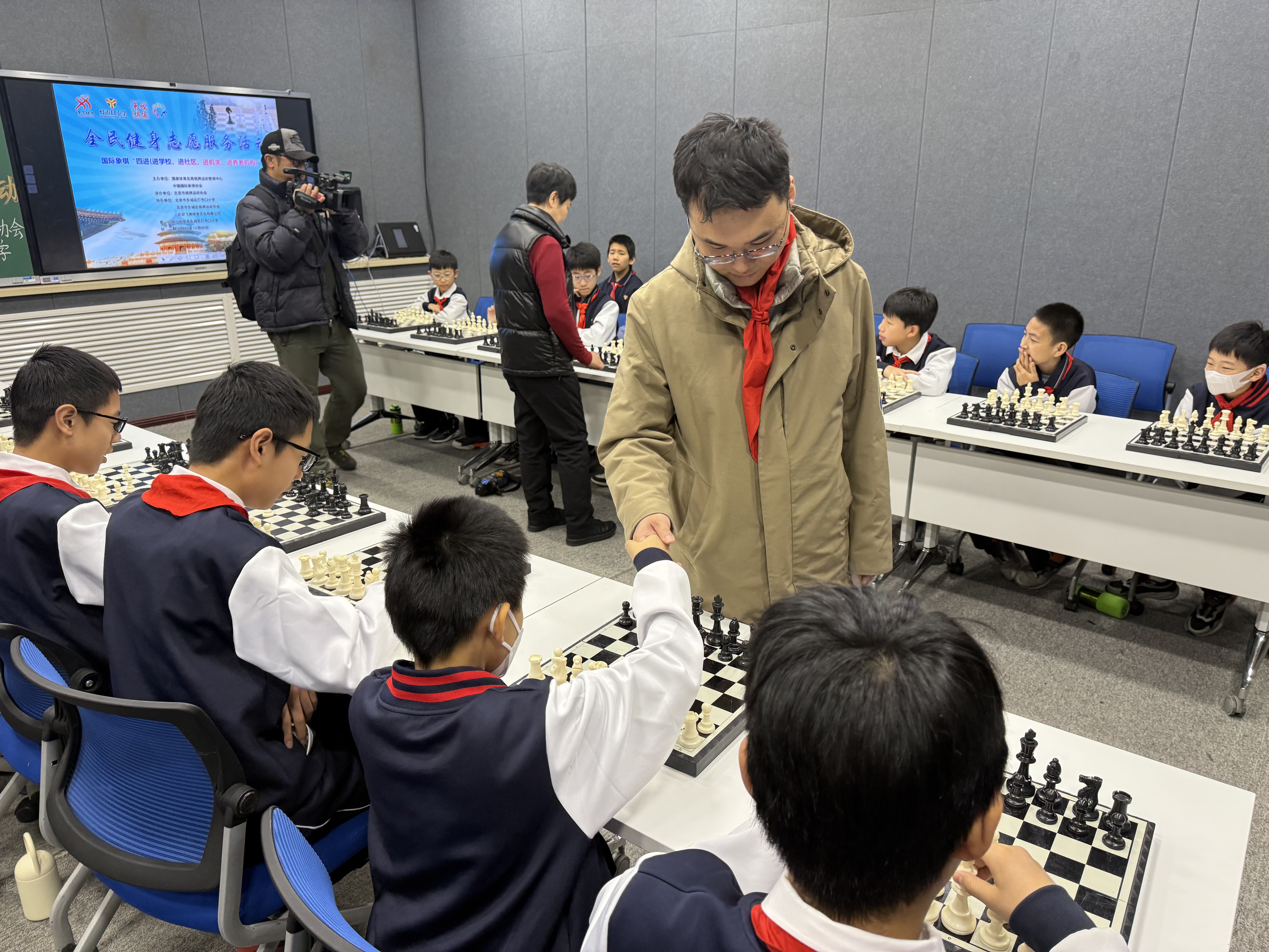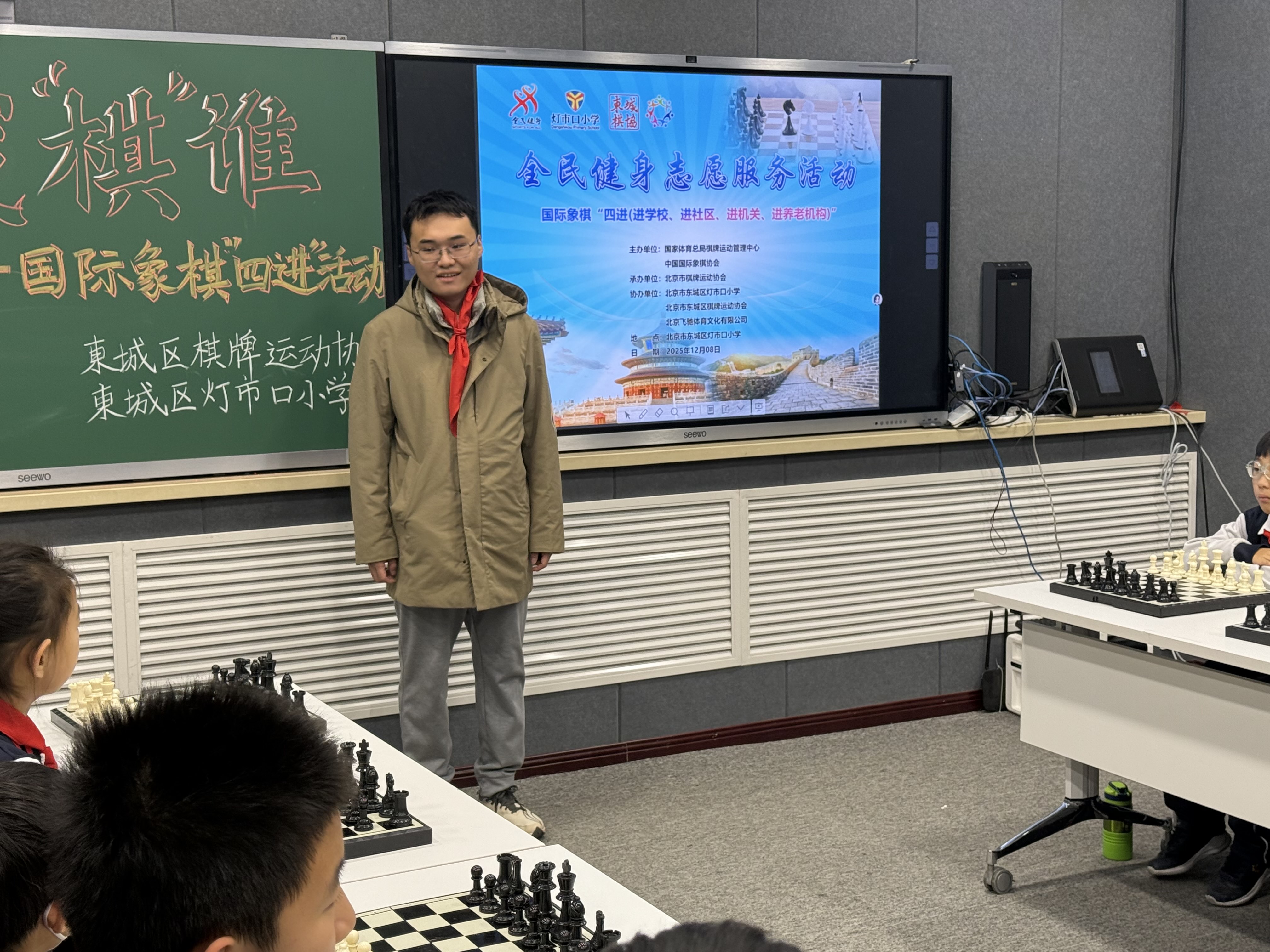 12月8日,在冬日的阳光中,全民健身志愿服务国际象棋“四进”活动来到了东城区灯市口小学。国际象棋男子特级大师、世界奥林匹克团体赛冠军、北京队教练兼队员余泱漪,国家高级教练员、原黑龙江省棋牌运动管理中心工会主席韩宏应邀来到灯市口小学,与数百名学生共赴盛会。