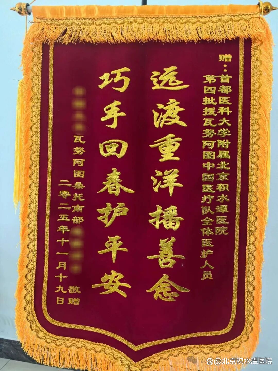 患者所属单位为医疗队送上感谢信与锦旗
