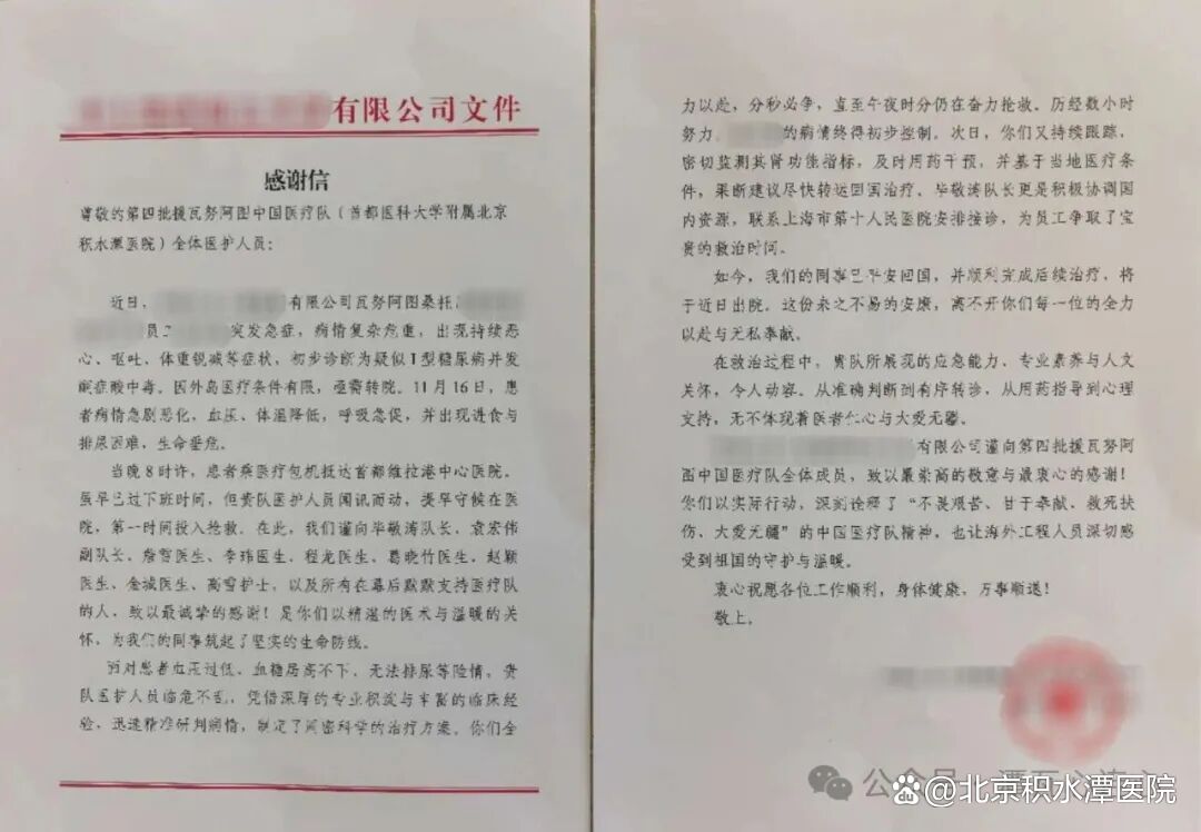 经过医疗队彻夜守护与精准治疗,患者肾功能指标趋于稳定,血糖控制在理想范围。11月18日下午,医疗队MDT小组全程护送患者登上飞往国内的航班。目前患者病情稳定,已在国内接受进一步的专业治疗。