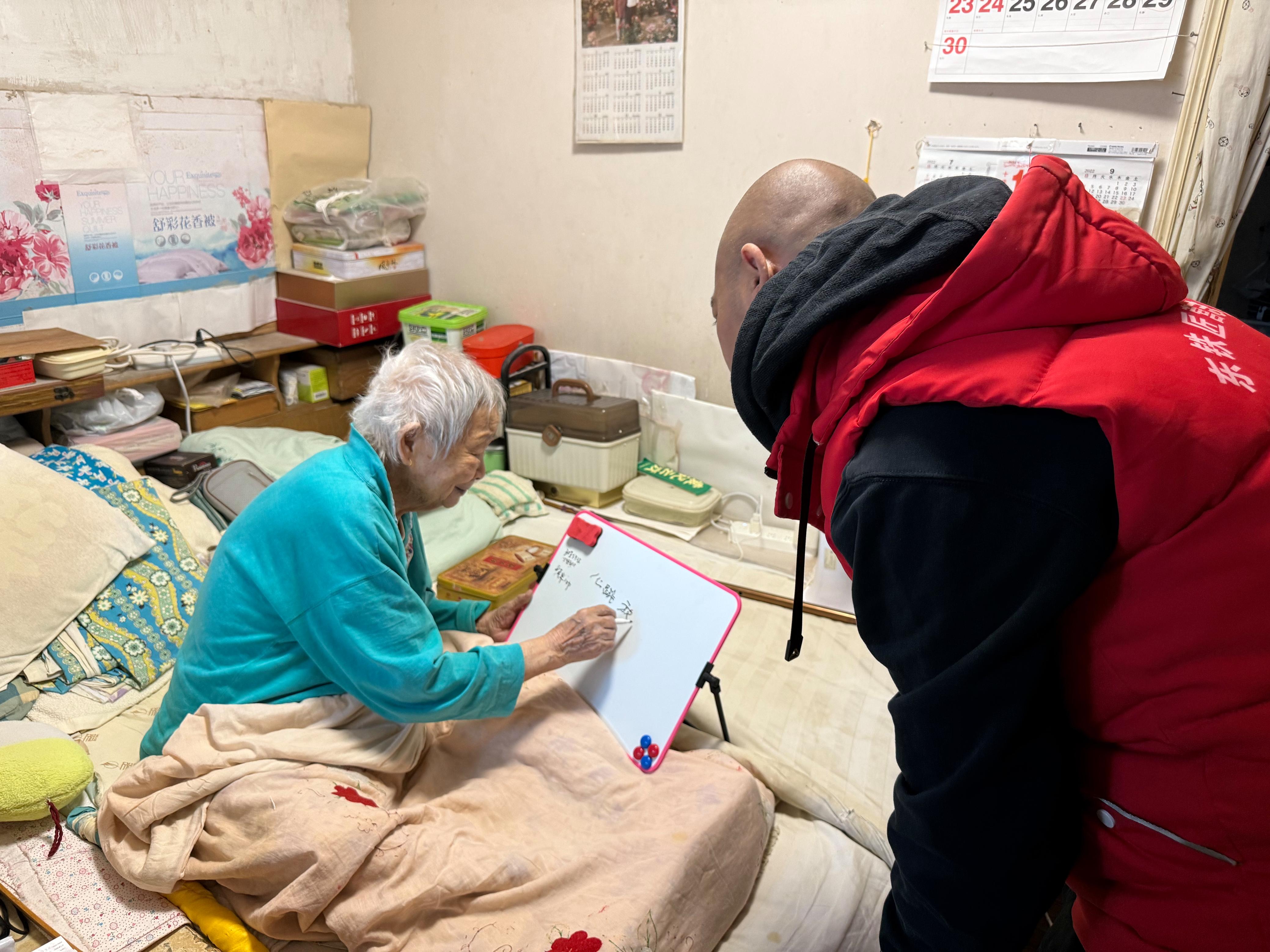 接到求助电话后,社区工作人员第一时间赶往老人家中察看情况,同时安排包片网格员紧急联系老人子女。抵达现场后,工作人员发现老人意识清醒,但精神状态不佳,其外孙已在家中陪伴。“您哪儿不舒服?”工作人员轻声询问,老人吃力地回应“血压188,心脏颤”。考虑到老人说话有气无力,社区工作人员拿出小白板耐心沟通,同时向其外孙详细了解情况。“姥姥一直按时吃降压药,可这几天血压总偏高,还执意不愿去医院。”外孙无奈地说。