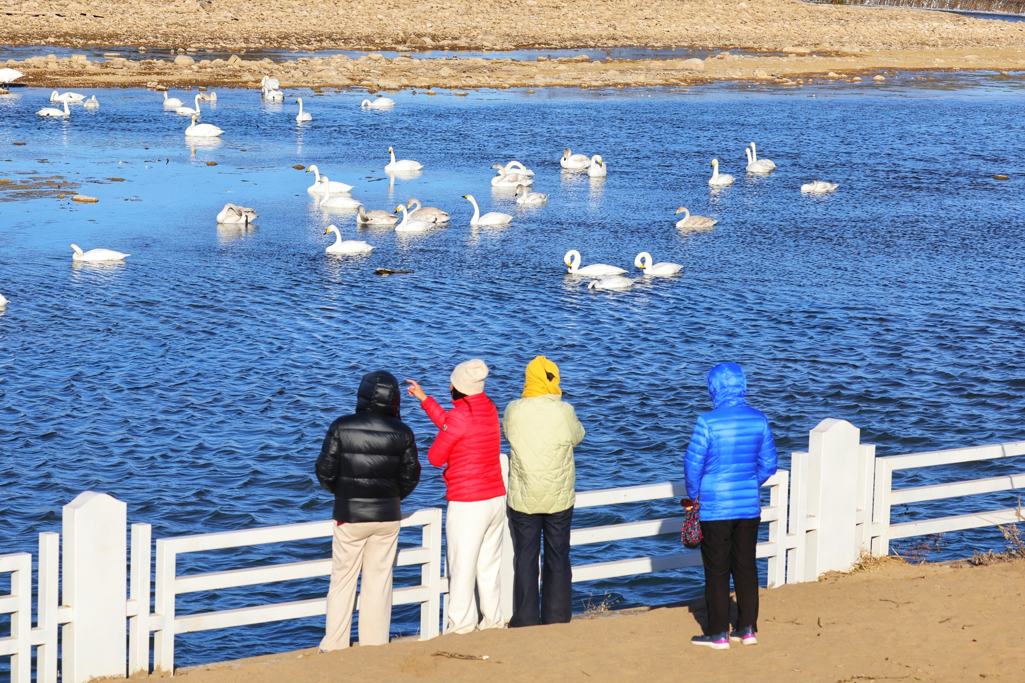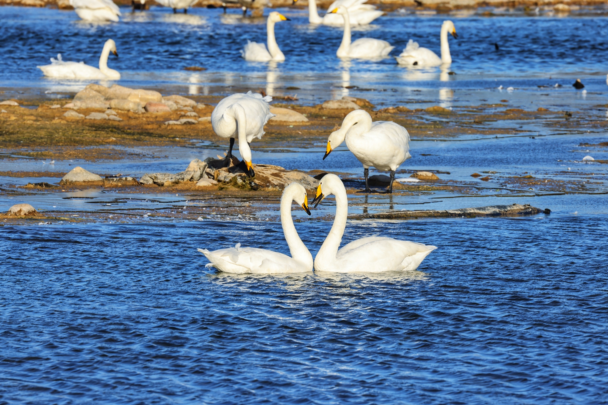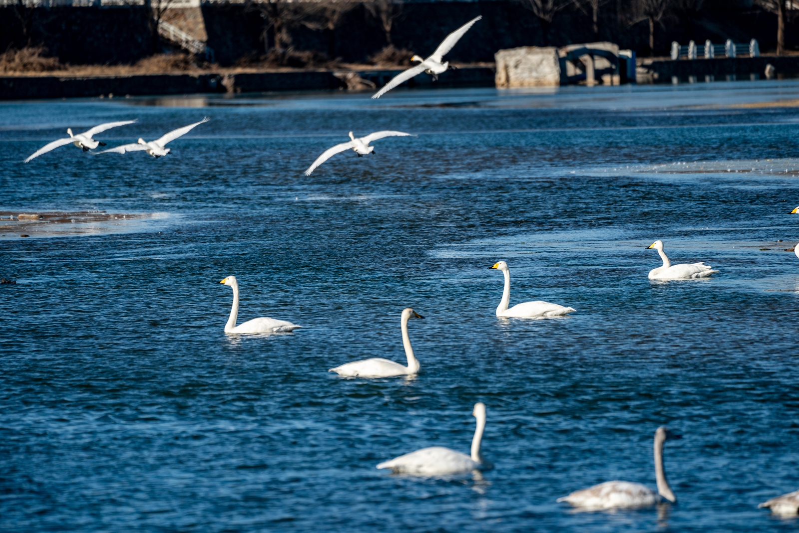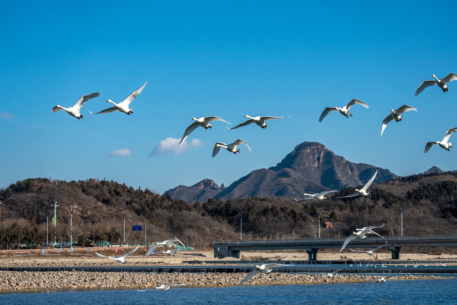 清水河畔天鹅翔集,唱响蓝天欢歌