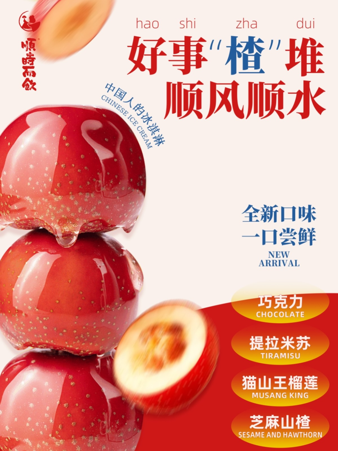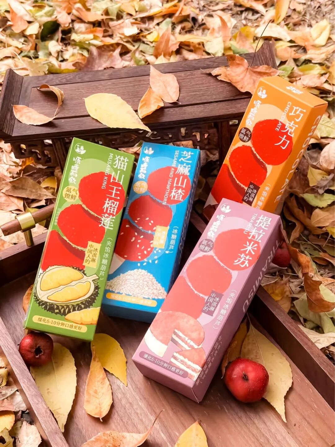 以顺时而饮的夹馅糖葫芦为例,作为品牌升级版自主品牌产品,其采用氮气锁鲜技术与独立密封包装,方便消费者携带,突破了传统糖葫芦“现买现吃”的场景限制,实现了口味与包装的双重进阶。