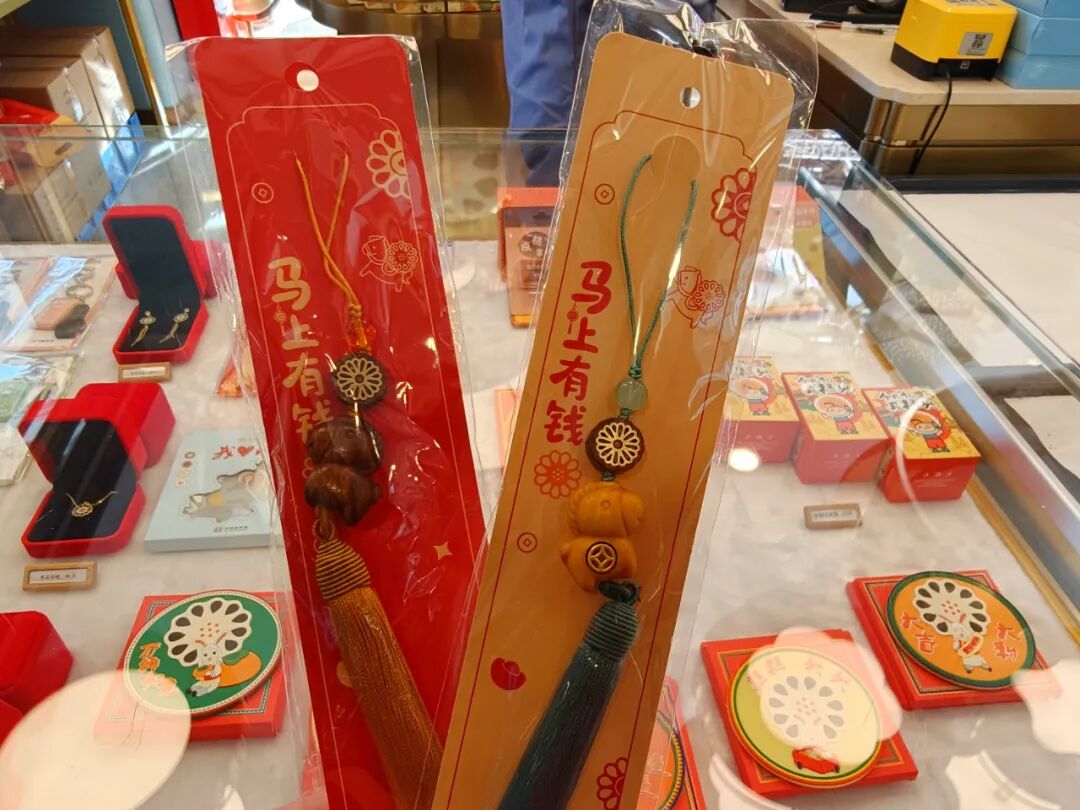 据门店工作人员介绍,该系列产品客群以年轻人和游客为主,同时吸引了不少好奇尝鲜的老主顾。文创产品中,“马上有钱”手机链凭借讨喜的造型和吉祥的寓意成为爆款。这款手机链以迷你小马造型搭配经典产品枣花酥、铜钱元素,既延续了生肖主题,又契合了大众新年求财纳福的心理,不少顾客在购买糕点的同时都会顺带入手,让新年祝福从舌尖延伸到日常随身好物中。