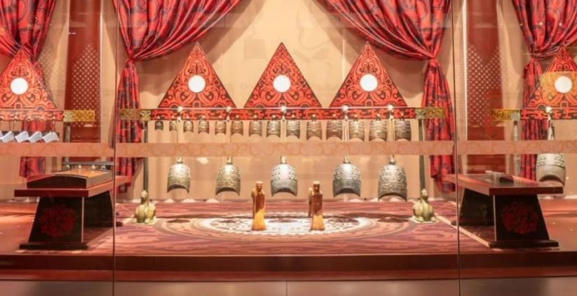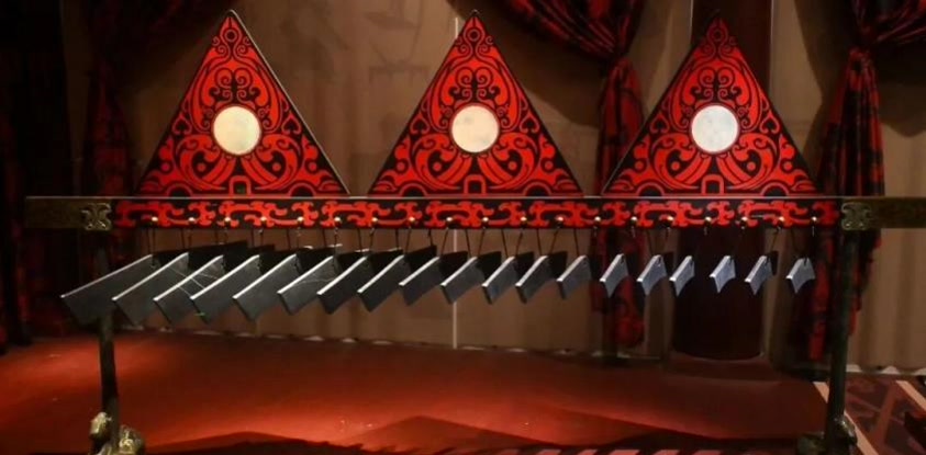 南昌西汉海昏侯墓出土编钟、编磬、琴、瑟等完整乐器组合,再现西汉列侯宴飨用乐景象。其中两架编钟与一架编磬的搭配,契合周代 “诸侯轩悬”礼乐制度,是列侯彰显身份、遵循礼乐传统的物质载体。