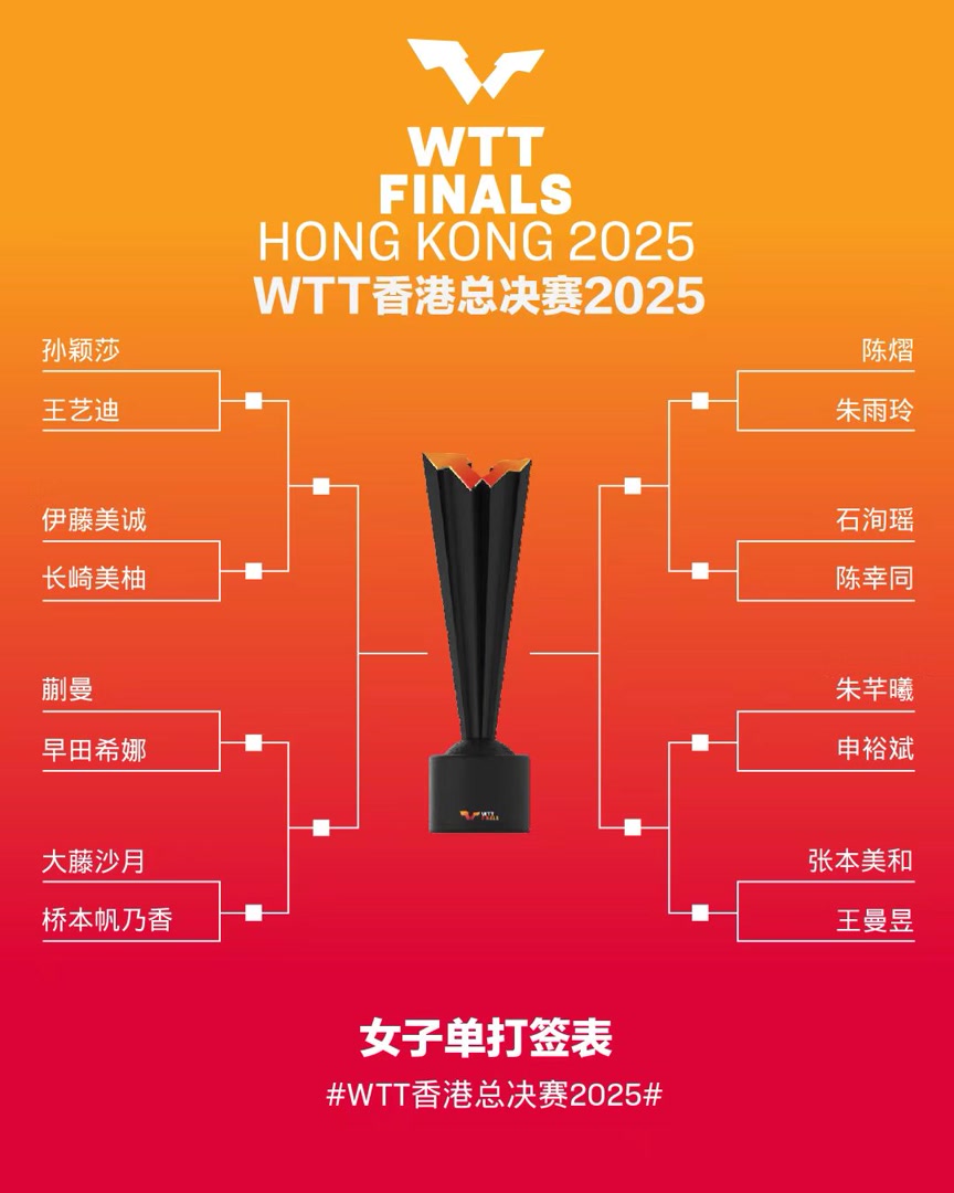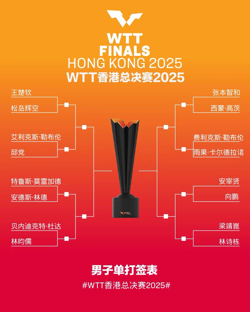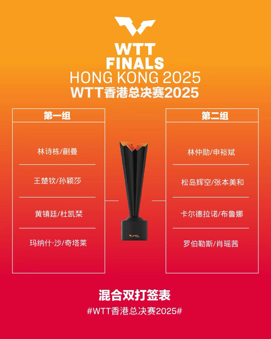 12月10日,WTT香港总决赛即将打响,比赛抽签仪式于8日下午进行。中国男队四人中仅王楚钦身处上半区,其与孙颖莎的混双组合则与队友林诗栋/蒯曼分在了同一小组。