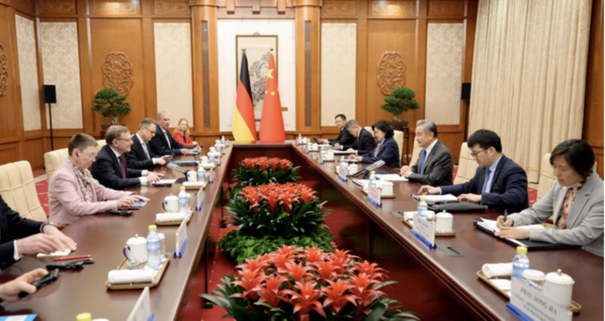 王毅说,中方愿同德方一道密切高层交往,加强战略沟通,对接发展战略,推进务实合作,为中德关系发展提供动力。德国作为欧盟第一大经济体,是欧洲一体化主要力量和中方重要合作伙伴。希望德方推动欧盟回归理性务实对华政策,坚持互利合作正确方向,通过对话化解分歧,避免将经济问题政治化,将贸易问题工具化,将正常合作泛安全化。中德作为多边主义的支持者、倡导者、践行者,应加强团结协作,推动构建更加公正合理的全球治理体系。