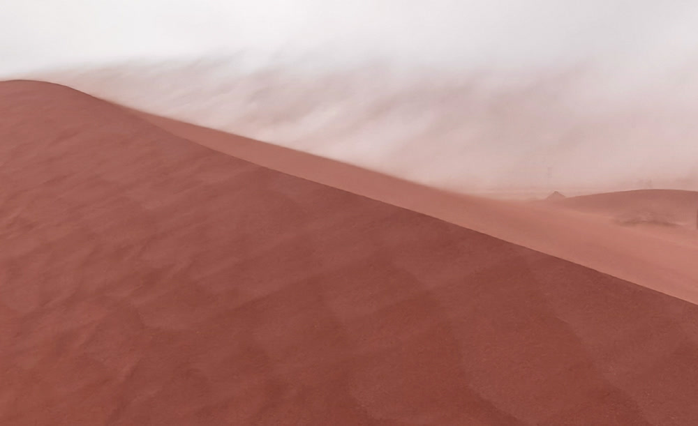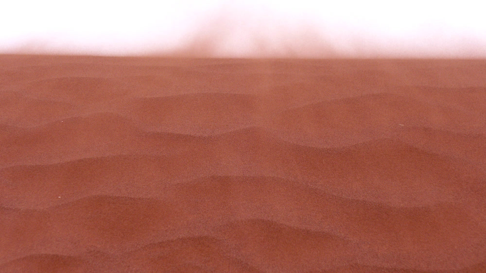 红沙土太过细软,在沙土中走路腿脚使不上劲。往上抬升的沙丘上越走到高处风力越大,1米8的身高非常招风被吹得东倒西歪。