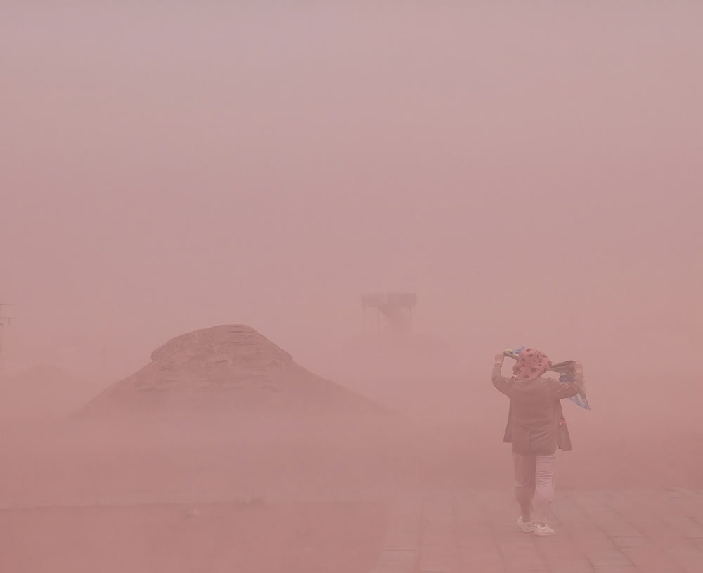 “总要拍点什么吧!”站在沙尘中,脑海中始终响着这个声音。在发现相机不能拍后,决定尝试用手机拍。