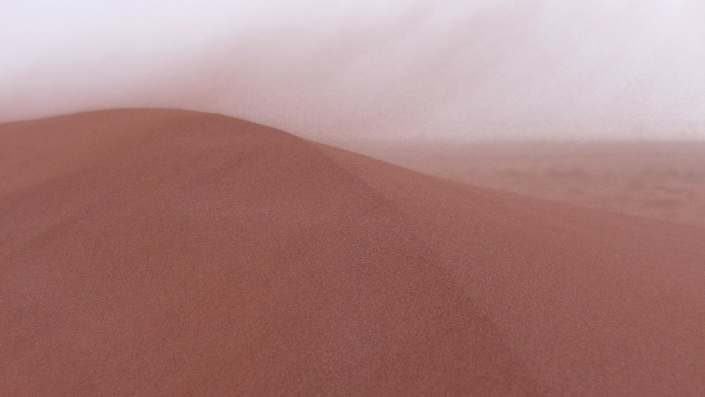 我握紧手机,屏着呼吸,在猛烈的沙尘风暴中连冲带爬赶了三个不同高度、不同形状的沙丘,终于拍到了比较满意的“飞沙火焰”现场实景。