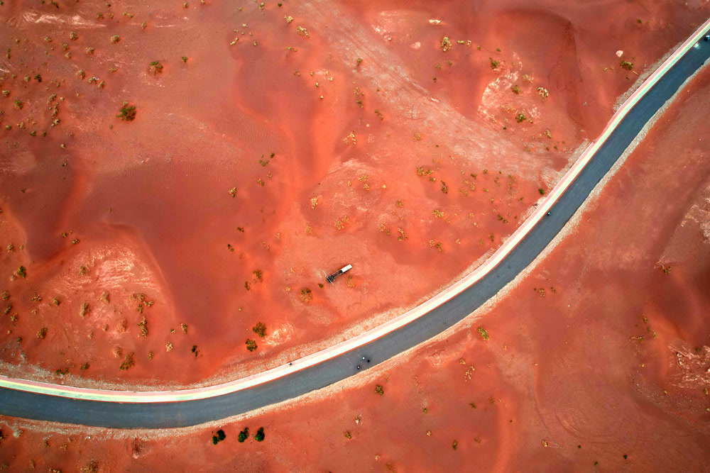 站在沙丘顶上,看清了眼前的“红沙漠”,绵延不断。