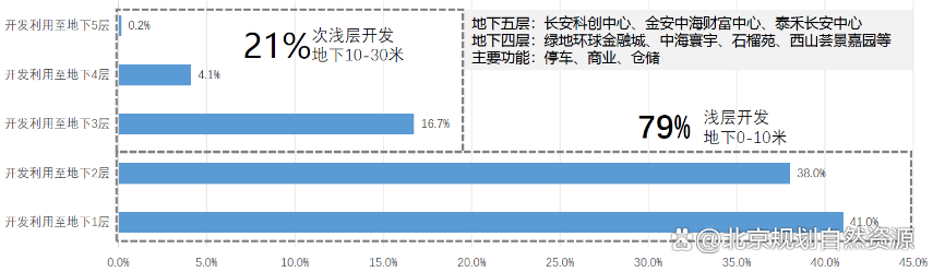 石景山区地下空间开发利用功能占比与开发深度占比图
