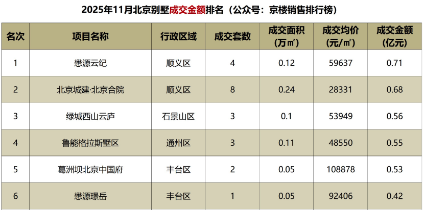 而今,懋源·云紀又凭借出色的销售业绩,荣膺2025年11月北京别墅成交榜首!