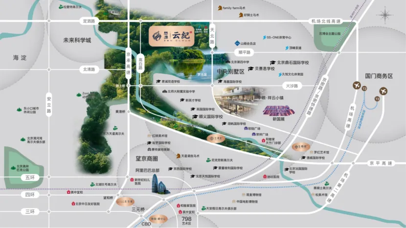 这片被自然环抱的土地,被商圈、教育、医疗等配套环绕,满足别墅区高净值人群对城市繁华的即时需求;又以温榆河的原生水系与公园的绿意为底色,构建出不可复制的自然秘境。这也让懋源云紀从择址观上奠定了“北京别墅核心位置” 的市场地位,并非简单依托温榆河资源,而是占有了中央别墅区的自然环境与城市繁华双重红利。
