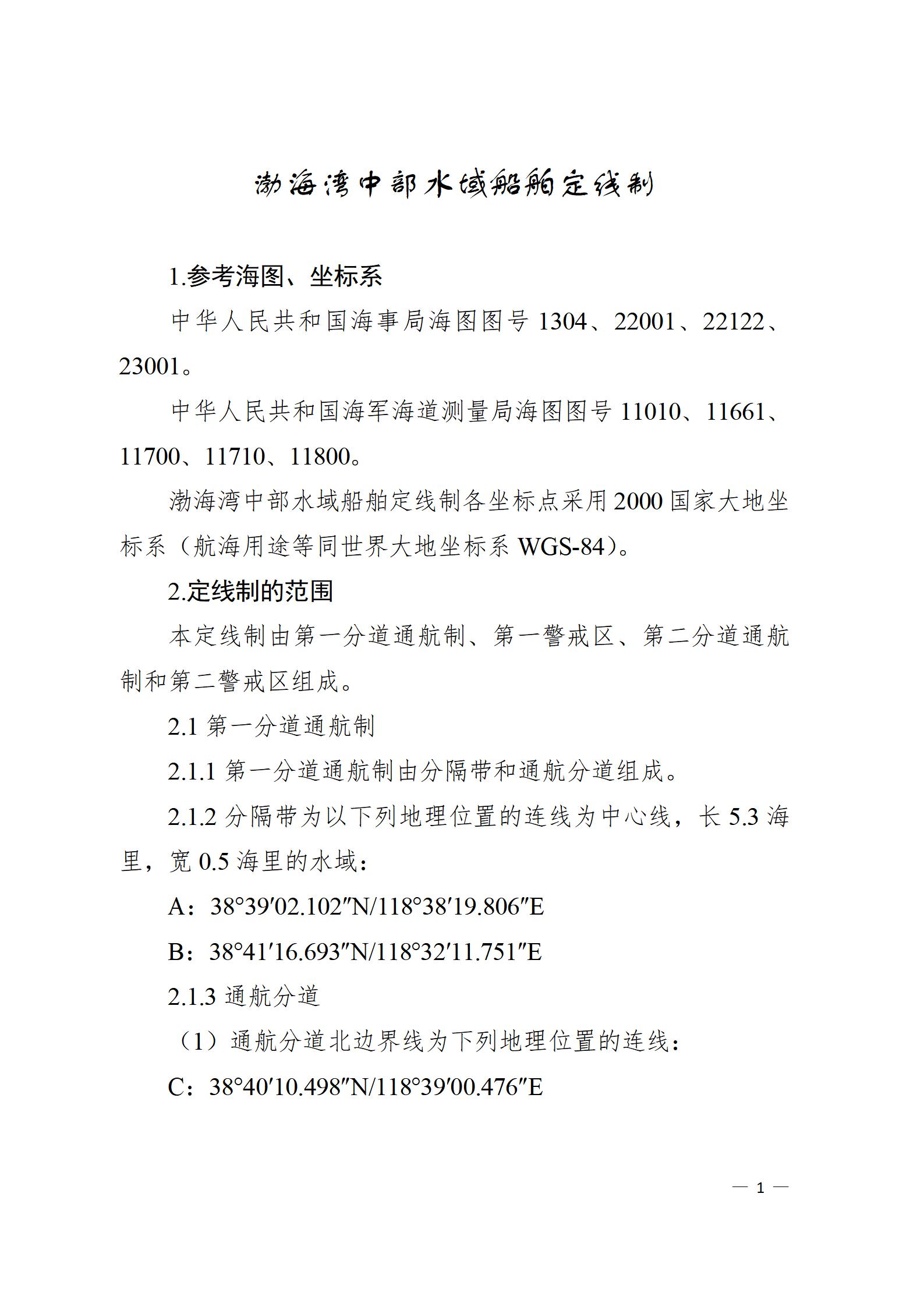 《渤海湾中部水域船舶定线制》发布,第一警戒区、第二警戒区确定