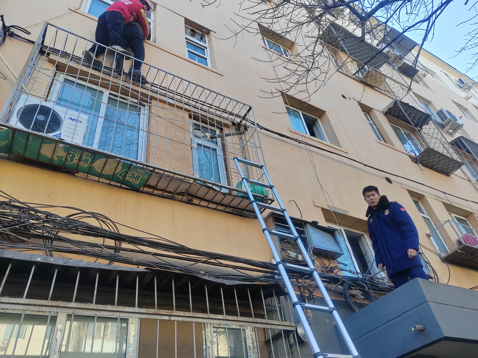 12月8日中午13时20分许,古城街道北小区社区发生惊险一幕。一位老人因外出未携带钥匙,被反锁在家门之外。情急之下,老人冒险踩上二楼外窗护网,想由此攀爬回三楼家中。然而,这一危险举动导致他身悬半空,进退维谷,脚下仅踩着二楼狭窄的护网,身体紧贴外墙,随时有坠落风险。