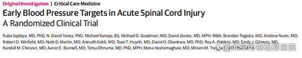 脊髓损伤是导致长期残疾的主要原因之一,早期血压管理是核心救治措施,旨在维持脊髓灌注,防止继发性损伤,然而,与常规血压相比,早期提升血压是否能改善急性脊髓损伤的长期神经功能结局呢?最近发表于《JAMA Network Open》的一项来自美国的多中心随机对照临床研究,让我们重新认识了早期血压目标管理在急性脊髓损伤中的价值。