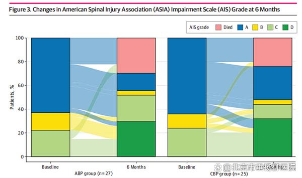 该研究共纳入92名患者(每组46名),平均年龄53.78岁,83%为男性。两组基线特征无差异。在6个月时,38名患者完成了随访,15名患者死亡。在幸存者中,两组在上肢运动评分、下肢运动评分或总感觉评分的变化上均未检测到显著差异;敏感性分析与主要分析结果一致;在次要结局(疼痛、日常生活活动能力、移动能力、生活质量、心血管功能)方面也未观察到显著差异。