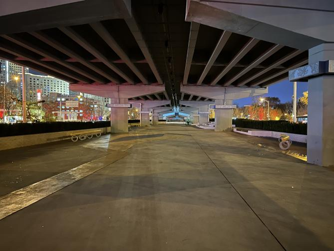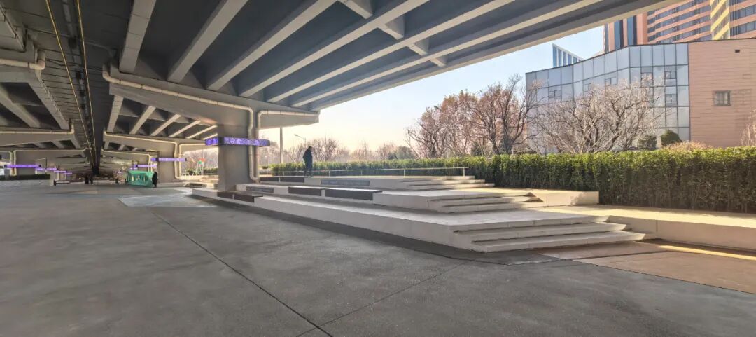 朝阳区城市管理委联合属地街道,拆除腾退桥下存在安全隐患的既有房屋与杂乱设施,释放闲置空间。结合亮马河风情水岸定位与市民需求,将其升级为复合型休闲空间。