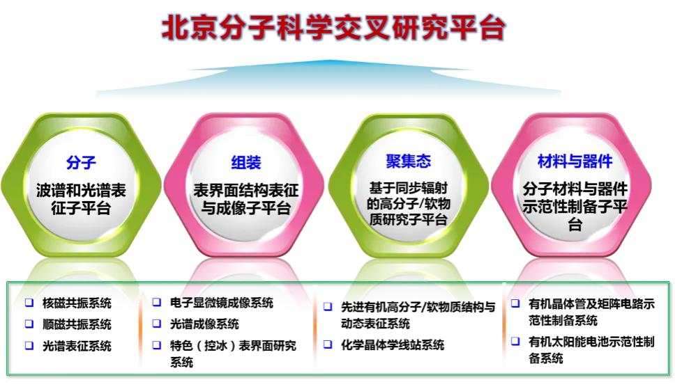 该平台聚焦分子科学的共性基础科学问题,结合国家战略需求,建设了国际先进的分子精细结构解析、功能材料性能评价和器件功能应用评估试验线的全周期研究体系,满足分子科学领域持续创新与跨越发展的高水平、精细化、尖端化技术需求。
