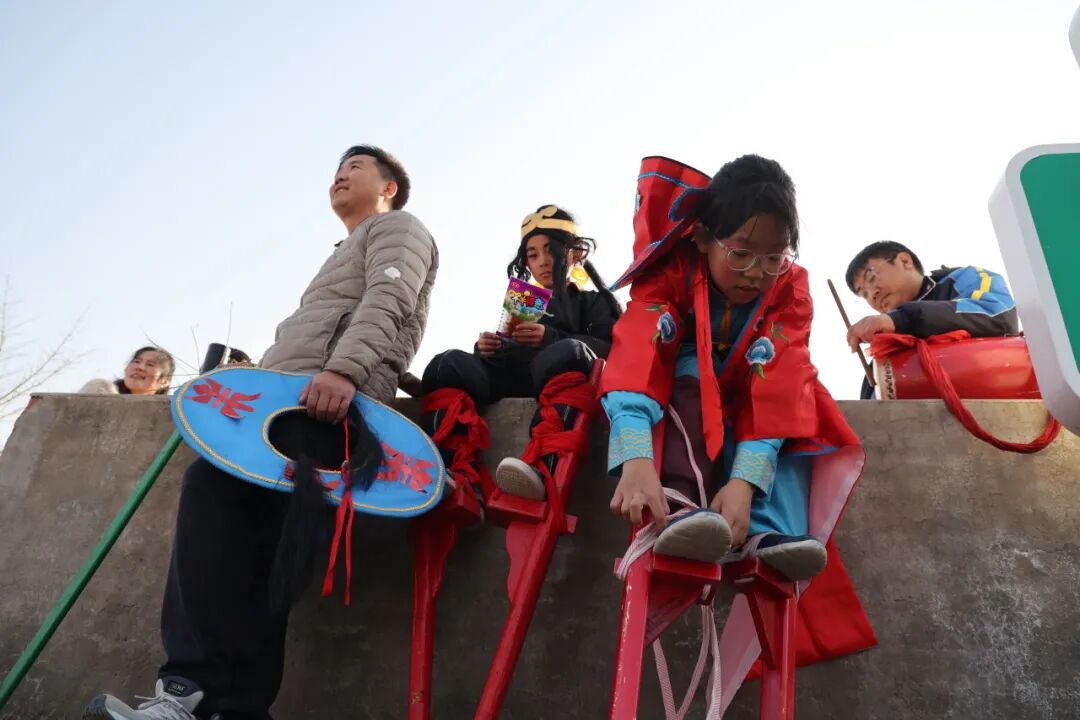 “村里不少老人都会踩高跷,看到孩子们练,还总主动过来指导。”郑辉说,为了让孩子们更好传承传统,郑辉和尹洪营按老高跷会的规制设置了不同角色:“坨头”尹梓硕负责引领队伍,“小二哥”郑梓涵要活泼灵动,“公子”王思琪则讲究身段神态,每次训练,有的家长还会来敲鼓伴奏,孩子在队伍里扮“小二哥”,父子俩一个敲鼓、一个表演,成了广场上一道独特的风景线。