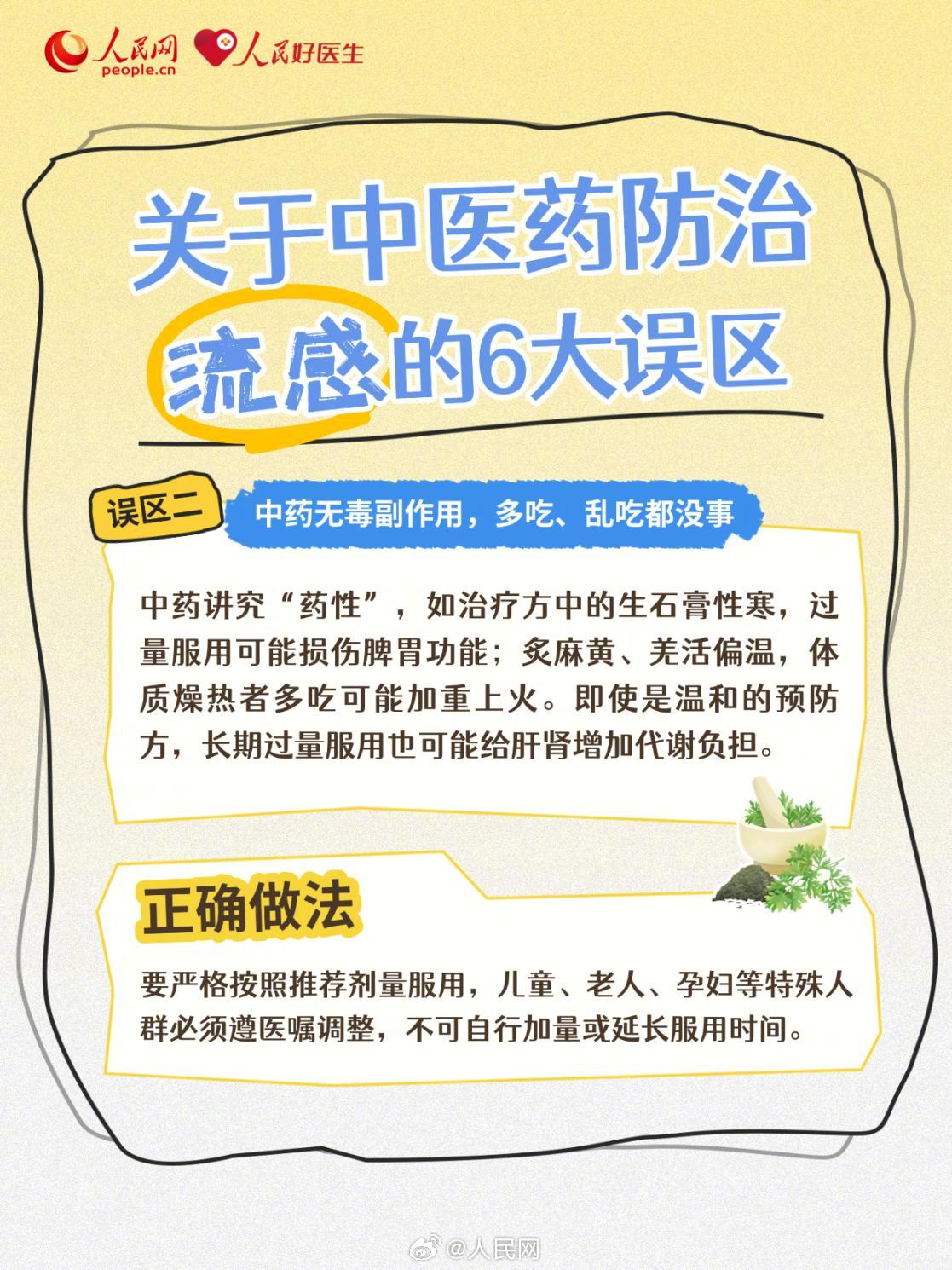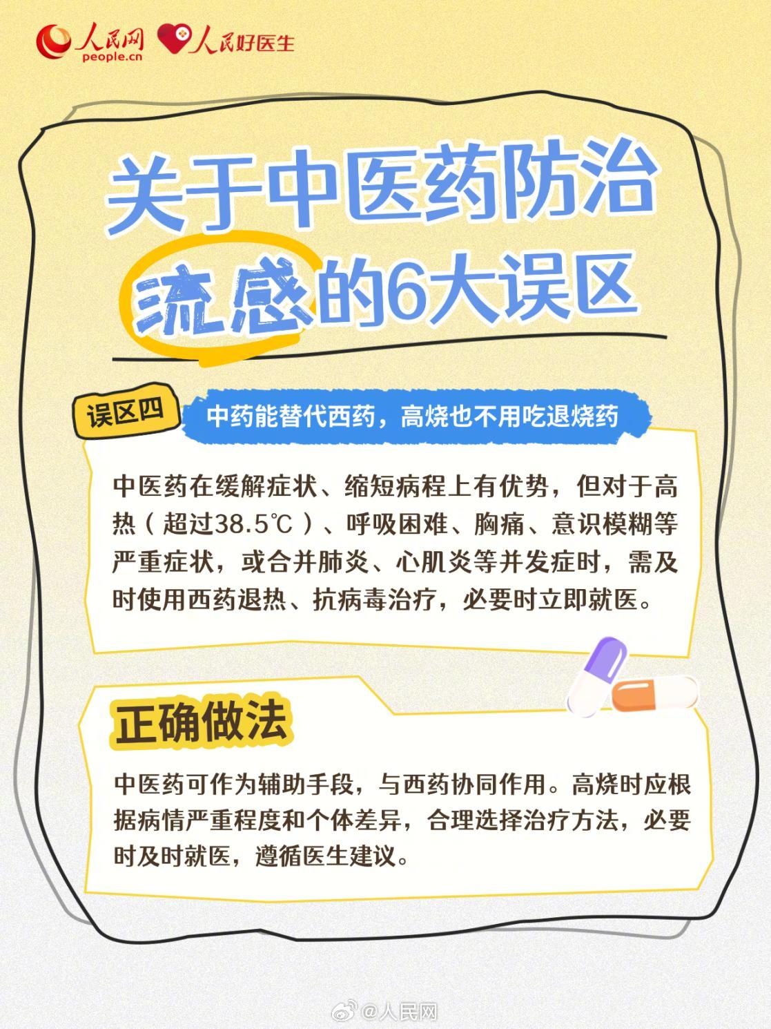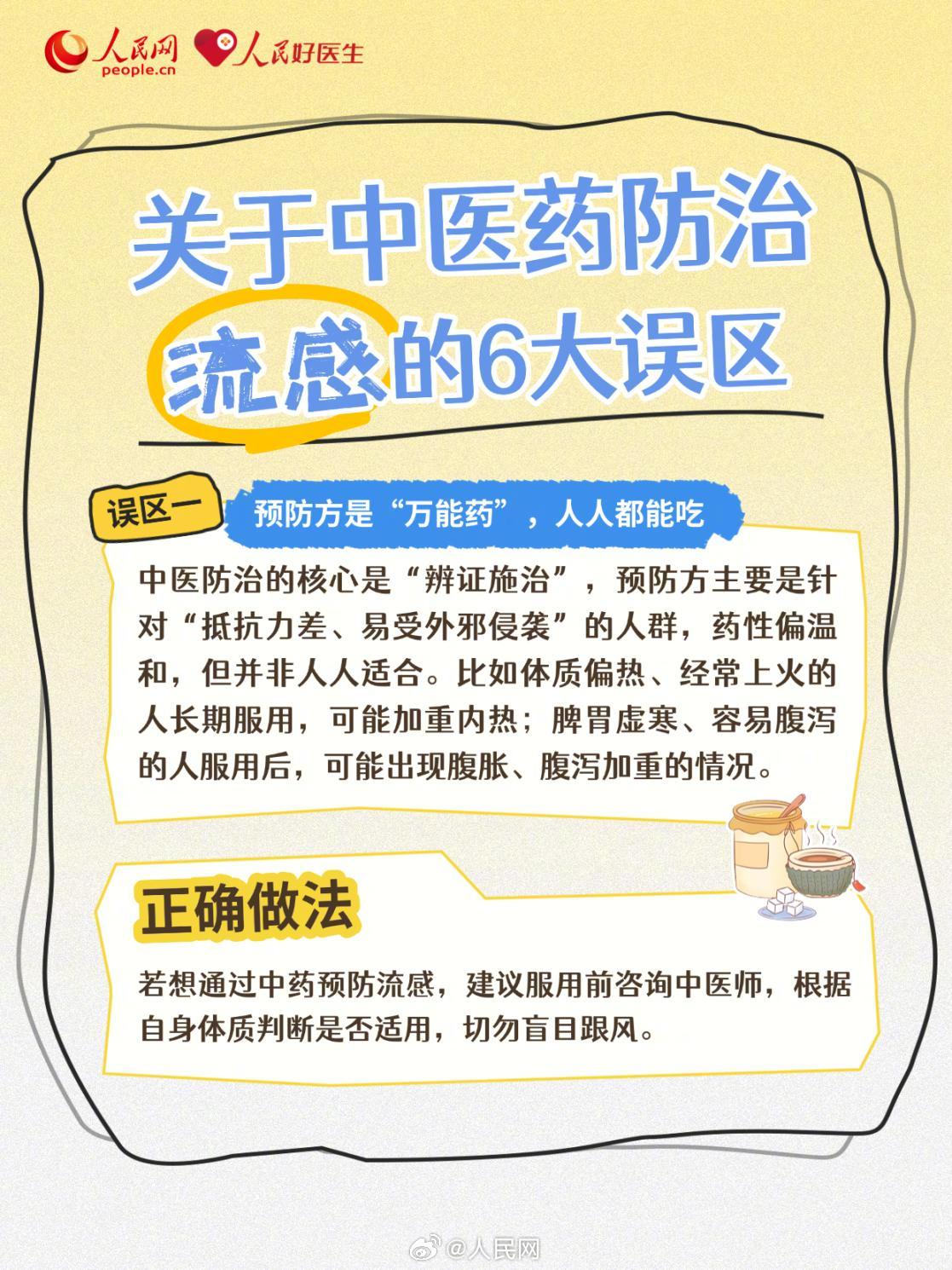高烧后不要过度进补。预防方是万能药,人人都能吃?症状一好转就停药?刚一退烧就进补?大众在使用中医药防治流感时,常因认知偏差走入误区,不仅无法有效地预防流感,甚至延误治疗,损害健康。这些误区,你中了几个?