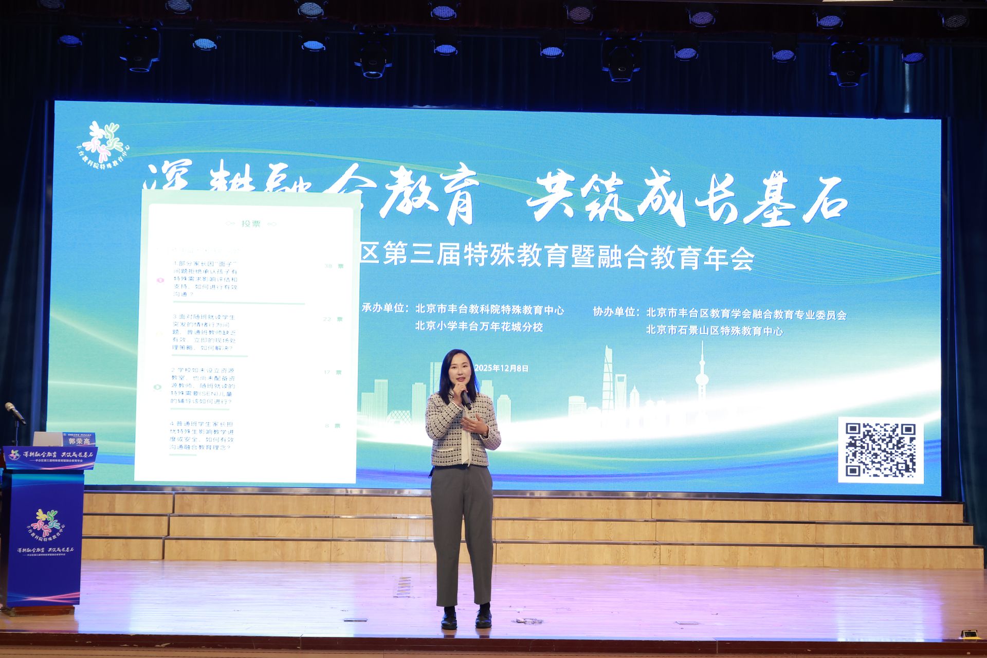 现场,互动环节成为了当天会议引人注目的焦点。“部分家长因面子问题拒绝承认孩子有特殊需要,影响孩子的评估,怎么沟通?”“学生情绪行为突然爆发,普通班教师缺乏现场处理策略怎么办?”“学校没有资源教室和资源教师,随班就读生的支持如何开展?”……会场瞬间变成了一个解决一线教师真实困惑的“问诊室”。数百位与会教师通过手机扫码,提交了他们在日常融合教育实践中最棘手的难题。