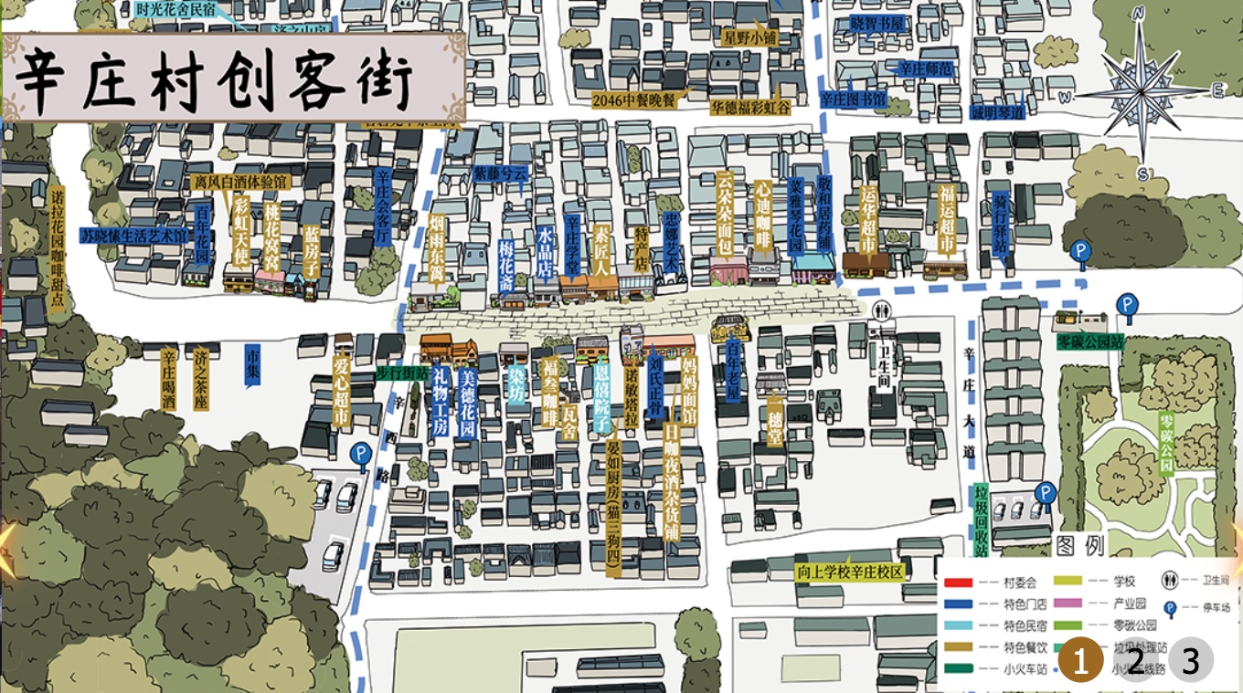 2016年,辛庄村率先开展垃圾分类。将“垃圾不落地”“两桶两箱分类法”等措施,显著改善村容村貌,形成可推广的"辛庄模式"。在垃圾分类过程中,搭建起有助于村两委干部与村民、新村民与老村民、村庄内部与外部世界、能人创业与共同富裕、农耕文化与现代文明共创共生的交融合作机制。同一年,首家特色餐饮店开业,带动创客创业热潮,村两委顺势规划打造多功能"创客街",为乡村振兴注入新动能。