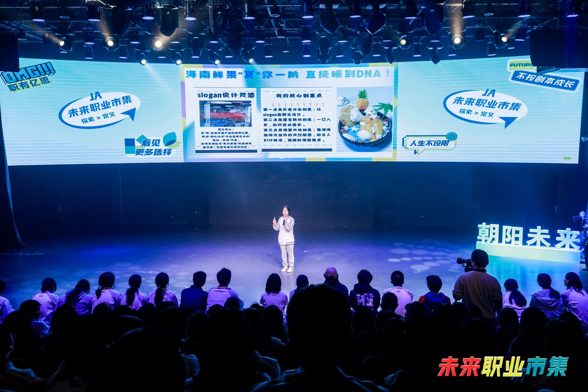 与小记者行动同步开展的,还有文案实习生岗位模拟面试。学生先通过问卷筛选,再接受企业创意总监的专业文案培训,最终4名学生晋级终面。在面向现场观众与面试官的终极考核中,他们围绕“助力海南果农冬季水果销售”主题进行广告语创意展示,最终1名学生斩获企业“一日实习”资格。“面试并未因参与者是高中生而降低考核标准,同学们的亮眼表现令人惊艳,充分彰显出新生代的无限潜力。”相关企业人力资源总监王佳琦坦言。