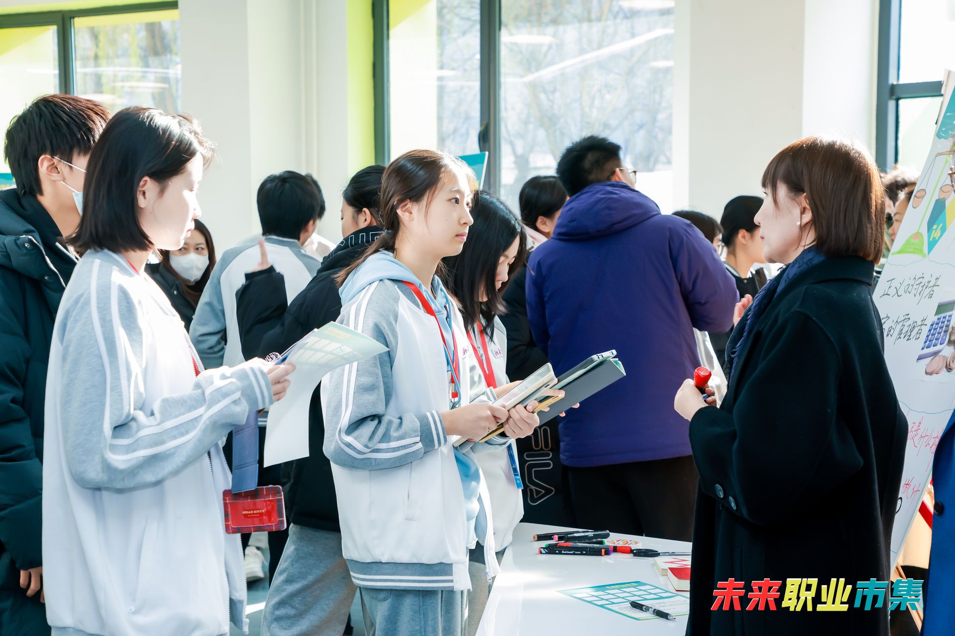 “从事这个职业最需要什么品质”“职场中遇到过哪些问题,是怎么解决的”……市集上,学生记者手持Pad、录音笔、摄像机等采访工具,围绕职场痛点、要点话题与职场人共同探讨。“我们走访了律师、传播、金融、编程、保险、咨询、国际物流等多领域从业者,收获了诸多对职业的全新认知。这次采访让我们明白,每份职业都有光鲜背后的艰辛,也有独特价值。”学生记者杨镒玮说。