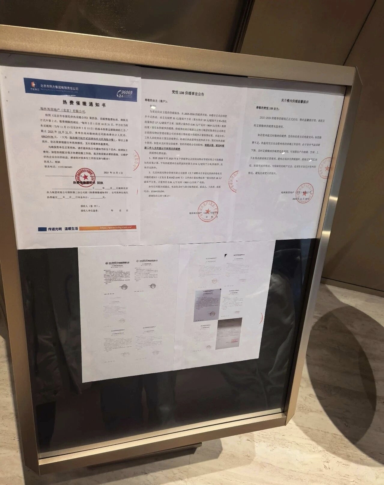 居民李先生告诉记者,一直以来大家对于供暖费按非居民价格收取就存在争议。为此有些居民拒绝交供暖费,有些则按照居民采暖价算出总价后给小区物业转账。今年供暖季开始前,小区业主收到了一封由小区开发商——翰林阁房地产(北京)有限公司发布的《梵悦108供暖事宜公告》。公告显示,从2025-2026供暖季开始,启用管井卡式热表,要求业主按照每平方米35元的价格,预交本季供暖费,如果业主不交供暖费,将不会供暖。小区业主这才发现,楼道暖气井内不知何时被安装上了卡式热表。