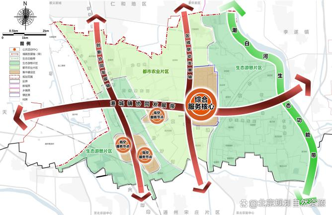 《李桥镇规划》充分发挥临空、滨水优势,提出建设“具有国际风范、首都特色、国门特征的港城融合发展示范镇”的目标定位,积极对接首都机场临空经济示范区及中德产业园,融入大运河(潮白河)文化带建设,形成以临空产业为主导、都市休闲农业与生态康养产业为特色的产业体系,综合提升区域产业配套与生态服务水平。