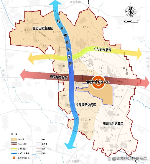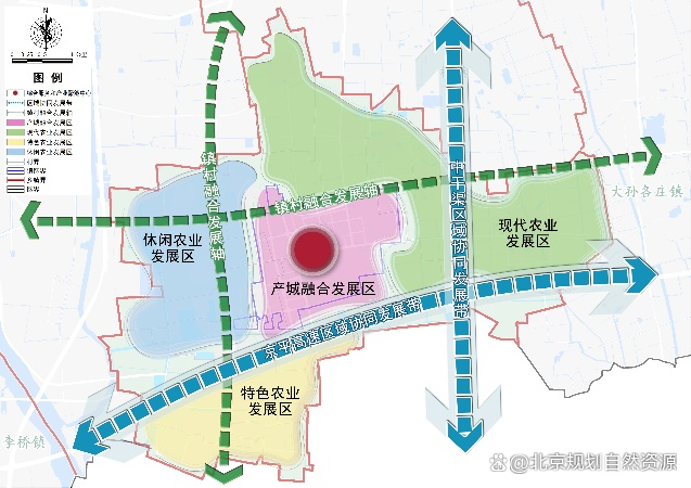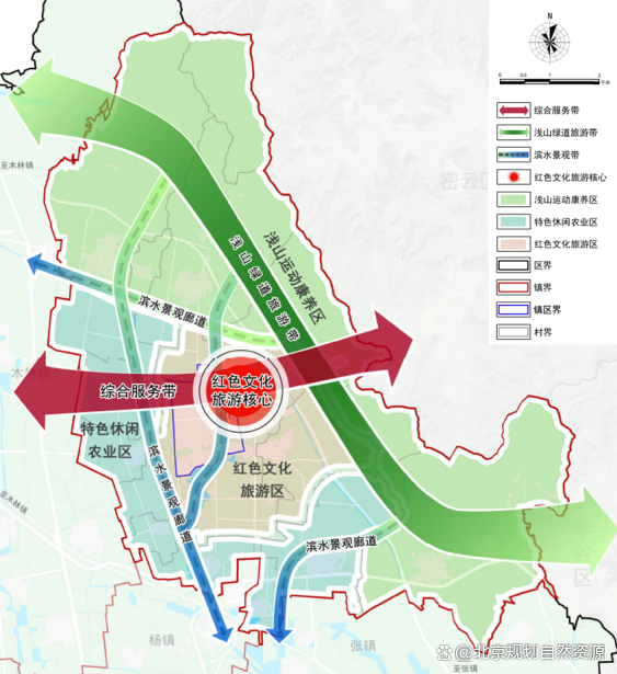 《张镇规划》深化落实分区规划对张镇的功能定位,结合自身资源本底和区位条件,确定“现代农业产业强镇、农文旅融合特色镇、绿色运动休闲生态镇”的总体功能定位。积极挖潜资源特色,发挥农业生态和休闲运动优势,构建以现代农业和运动休闲为主导、文创旅游和大健康为衍生、高端制造业为拓展的“2+2+1”产业体系,实现镇域产业协同发展。