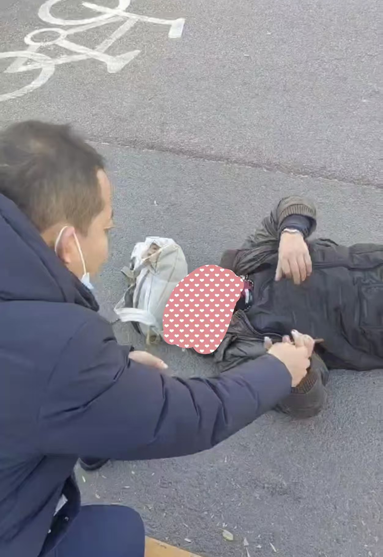 由于事发地正处在十字路口附近,车流量大,在确认老人没有严重骨折迹象后,徐春扬和张霞小心翼翼地把老人扶到马路边。两人轻声安慰着老人,分散他的注意力,缓解疼痛带来的紧张感。过了一阵儿,老人的精神状态有所恢复,表示自己姓王,刚退休不久,中午和朋友多喝了几杯。没想到回家时,脚下没站稳,直接脸朝下摔在地上,幸好衣服穿得厚,只有额头擦伤了一点儿。