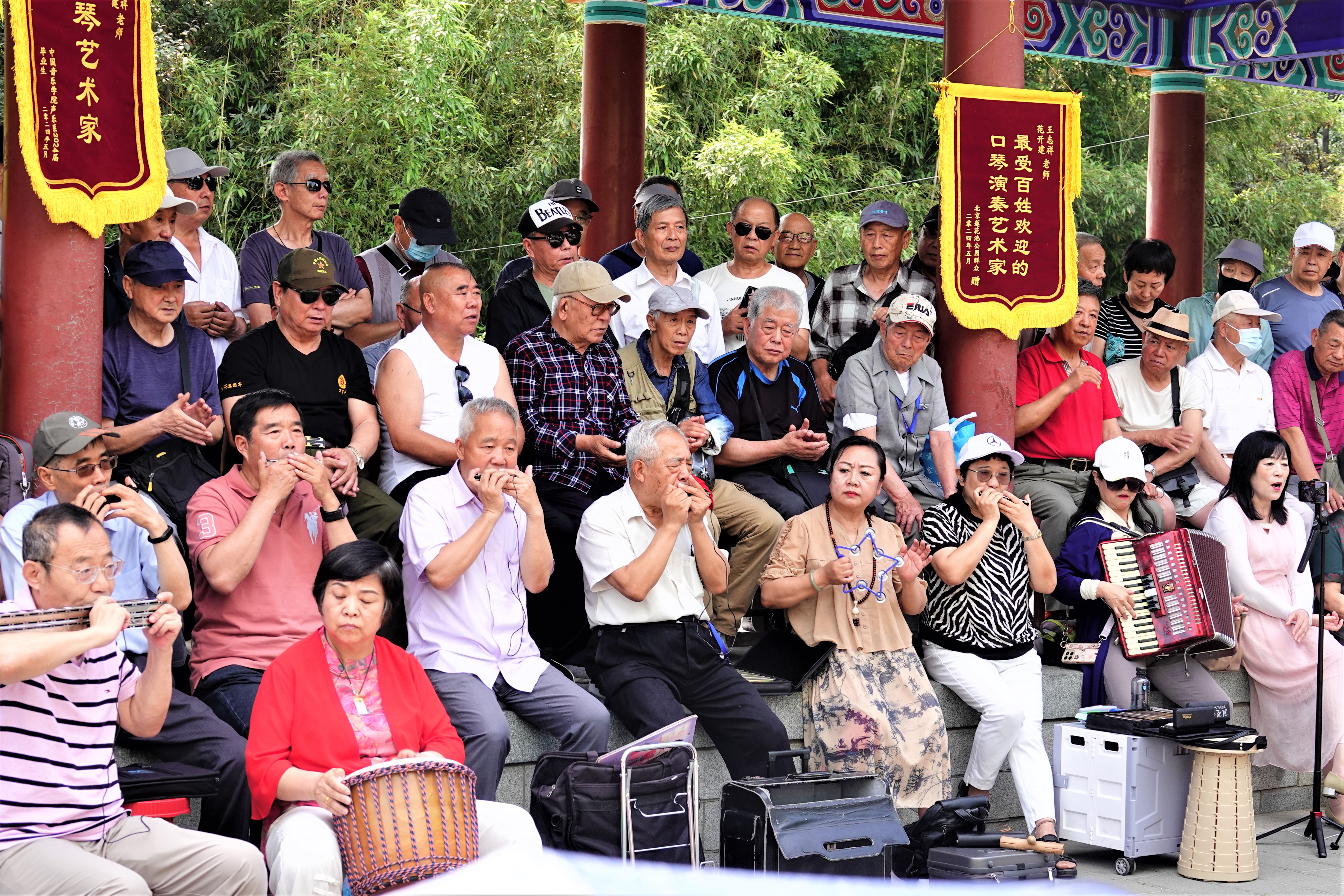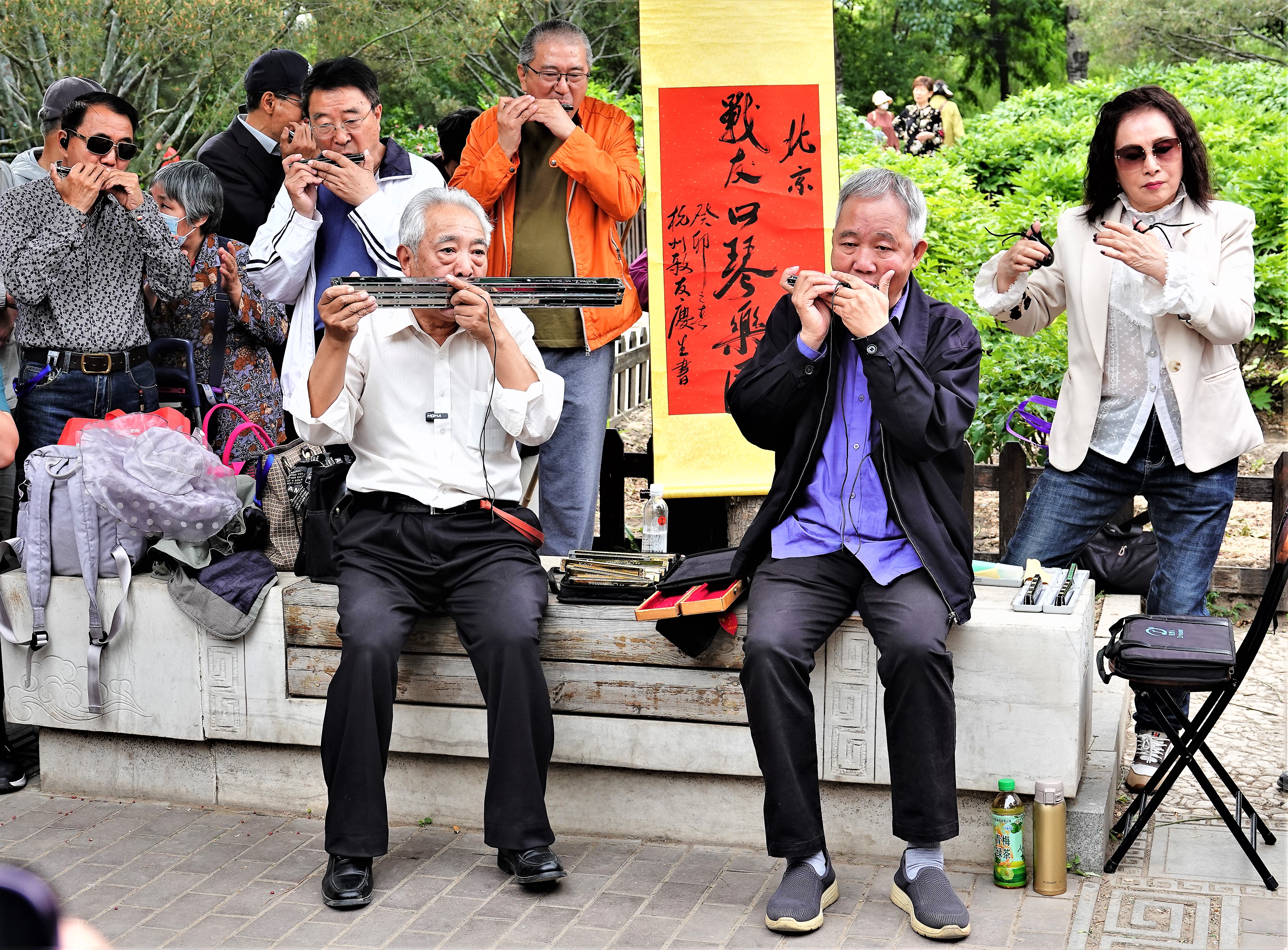 此后,“花甲组合”的公园演出场场观众爆满,甚至有不少老人专程从外地赶来,只为到现场一睹两位口琴大爷的风采。“一位辽宁的琴友跑来听演出,结果连续三次扑空。”从那之后,两人约定,每周四上午9点半到11点半,准时出现在莲花池公园,用口琴演绎一首首大家耳熟能详的歌曲。